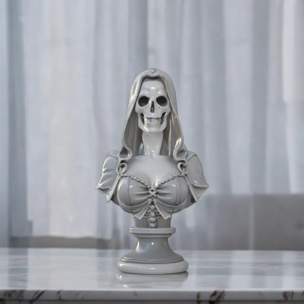 Tượng Nữ Thần Chết cao 12cm, một tác phẩm điêu khắc nghệ thuật đầy ám ảnh và quyến rũ. Hoàn hảo để trang trí, mang đến vẻ đẹp rùng rợn và hiện đại cho không gian của bạn. Thích hợp cho người yêu thích phong cách kinh dị, fantasy.