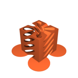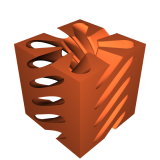 Mẫu "Impossible Passthrough" tí hon bằng kích thước Khối Hiệu Chuẩn. Có hai bộ phận chèn vào, một hình khối và một hình trụ, cho phép tùy chỉnh hoặc dễ dàng in ấn. Phiên bản "tai bám dính" hỗ trợ in tốt hơn. Tệp Fusion360 đi kèm cho các bản phối lại.