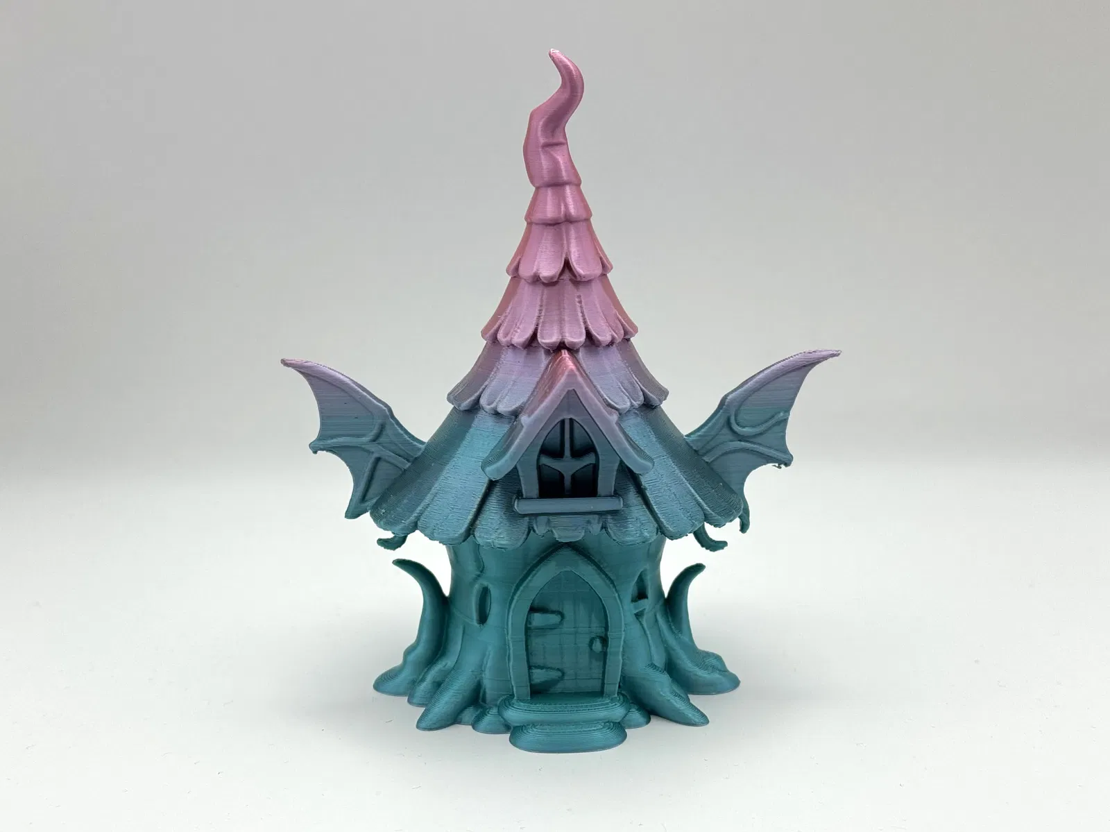 Chào mừng đến với khía cạnh đen tối hơn của truyện cổ tích… Ngôi Nhà Tiên Ma Quái là nơi sự mê hoặc kỳ lạ gặp gỡ nét quyến rũ kỳ ảo. Với những rễ cây xoắn vặn, đôi cánh giống dơi và mái vòm lầu nhọn xiêu vẹo, ngôi nhà nhỏ bí ẩn này trông như thuộc về một linh hồn rừng tinh quái—hoặc có lẽ là một thứ gì đó còn đáng sợ hơn.