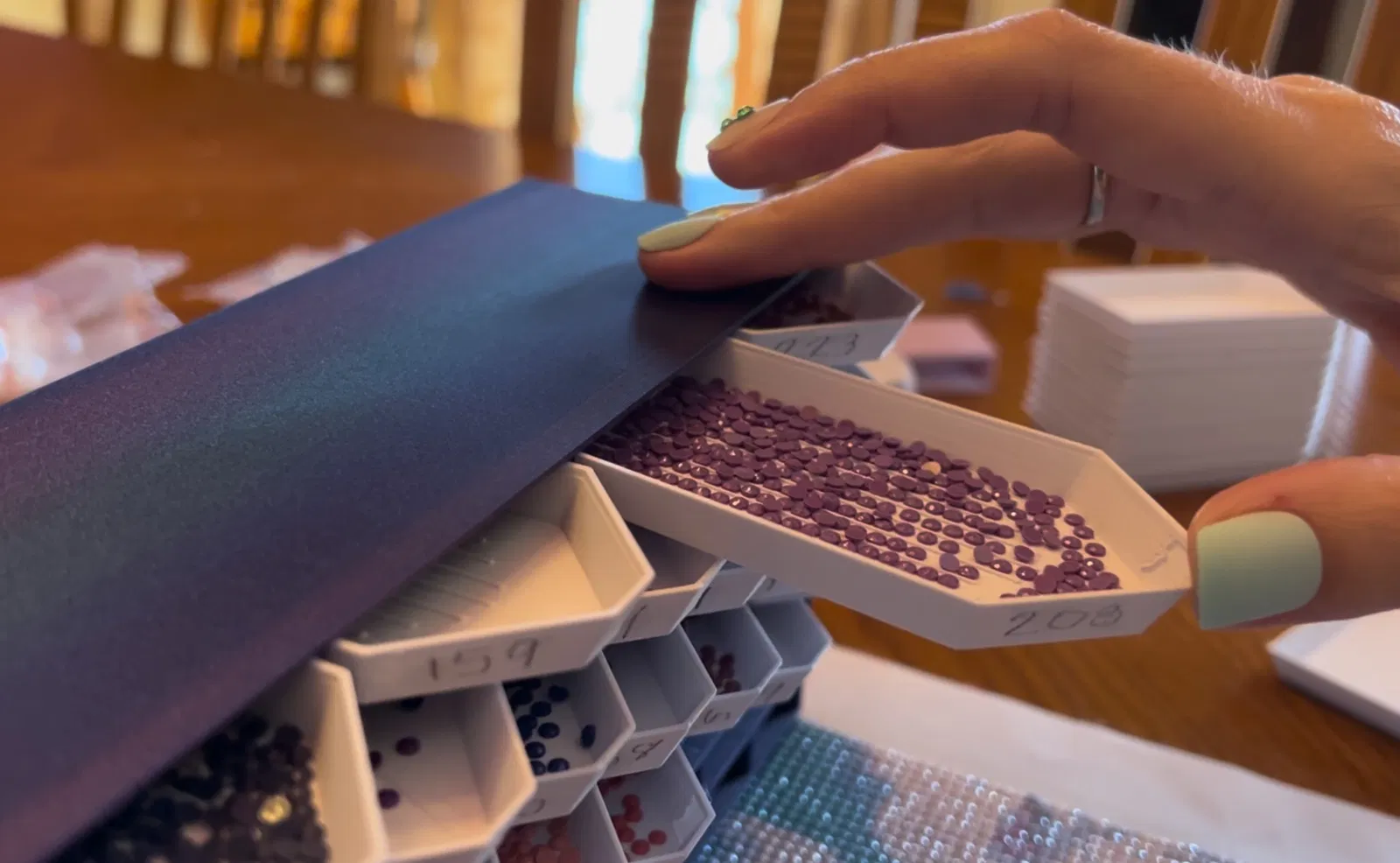 Hộp lưu trữ giúp bạn sắp xếp kim cương đá gọn gàng trong lúc làm dự án tranh đính đá. Khay có đáy rãnh giúp căn chỉnh và đặt kim cương dễ dàng, rất tiện lợi để đựng các vật dụng nhỏ khác.