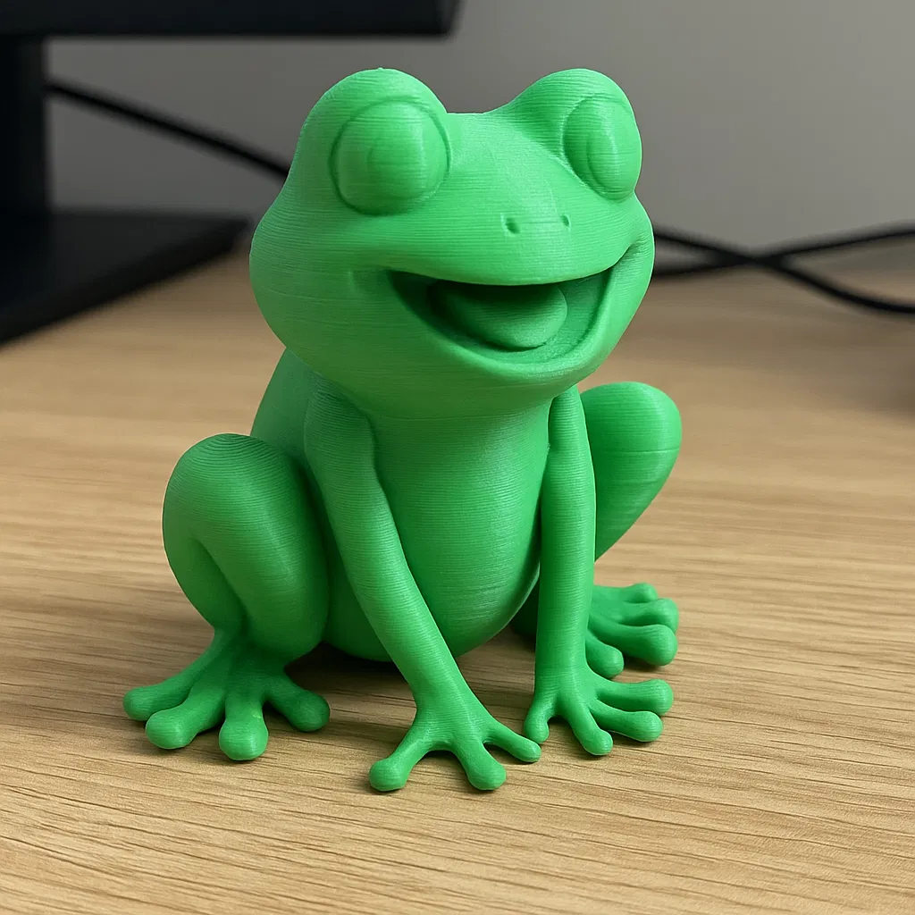 Chú ếch hoạt hình vui vẻ này là bạn đồng hành hoàn hảo trên bàn làm việc hoặc món đồ in ấn ngộ nghĩnh cho trẻ em và những người yêu ếch. Thiết kế bo tròn, mềm mại, in đẹp không cần hỗ trợ. Thích hợp làm vật trang trí hoặc tượng nhỏ.