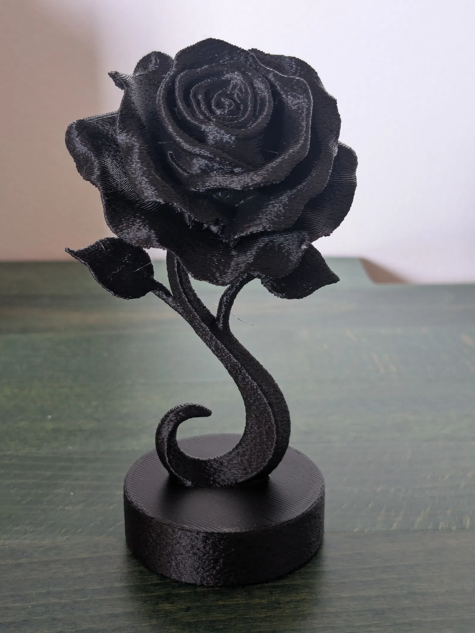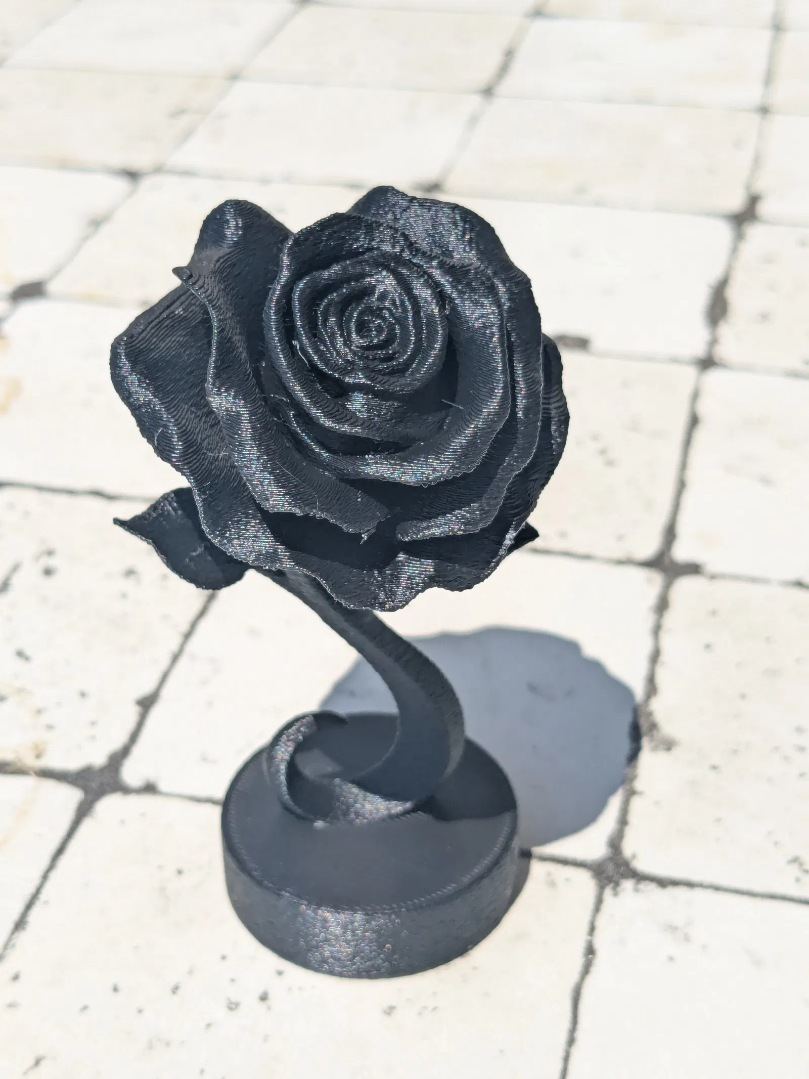 Một bức tượng hoa hồng hiện đại đẹp mắt, làm từ PLA đen với các cài đặt in chi tiết. Tuyệt vời để trang trí hoặc làm quà tặng. Phiên bản này được in với chiều cao lớp 0.2mm, tree supports và fuzzy skin.