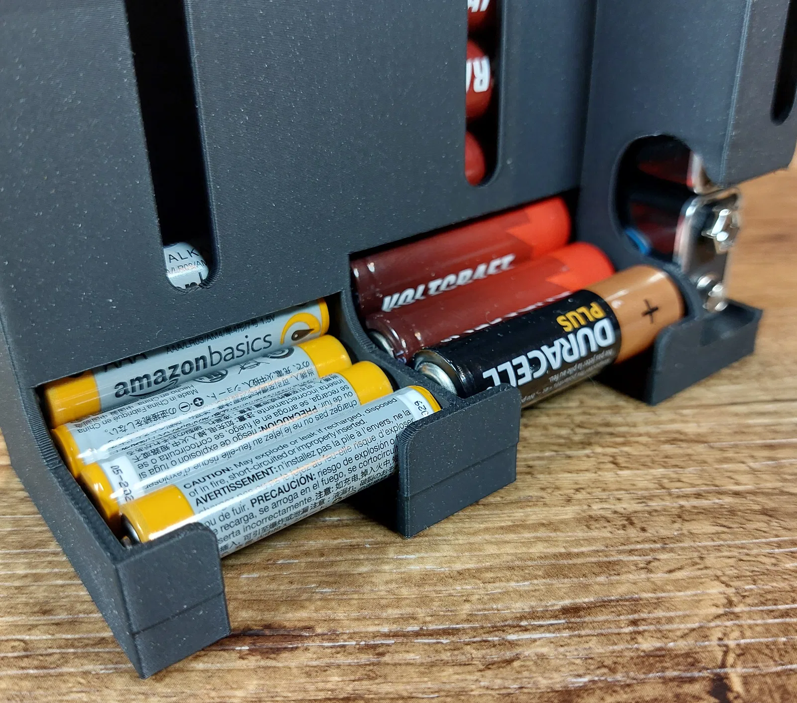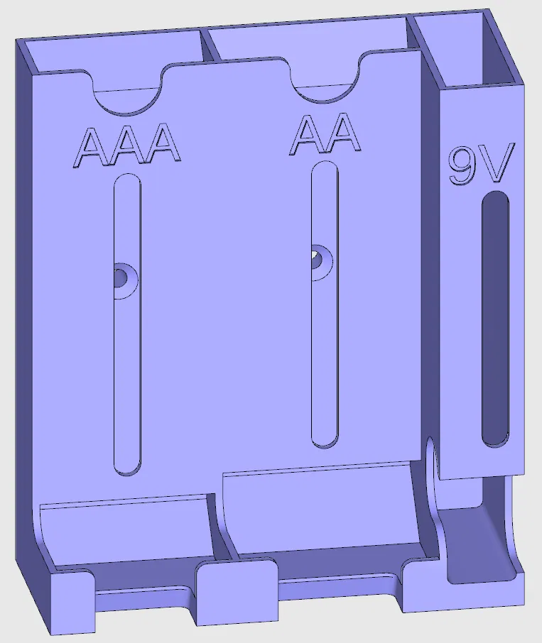 Làm lại bộ giá đỡ pin với các kích cỡ AA, AAA và 9V. Bản cập nhật này có thêm khe cắm pin 9V tiện lợi. Cần sử dụng support khi in và khuyến khích in bằng PLA với độ dày lớp 0.2mm.