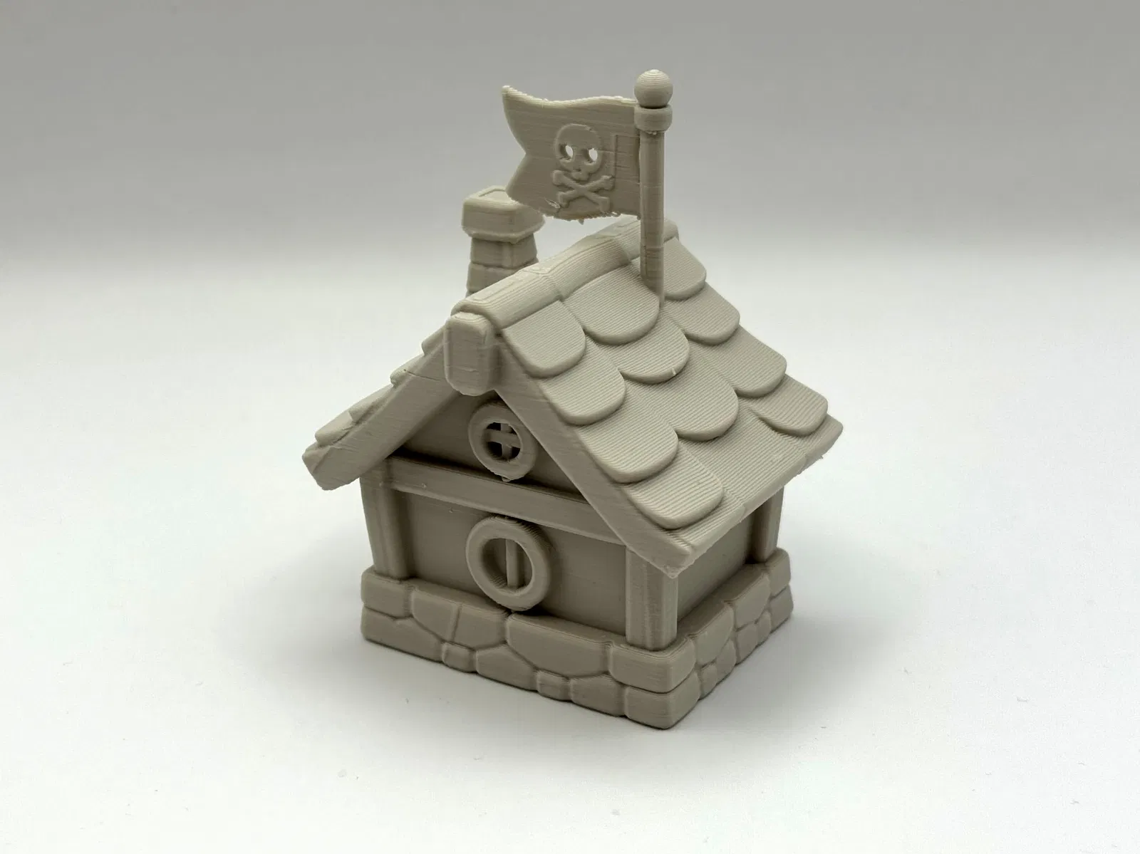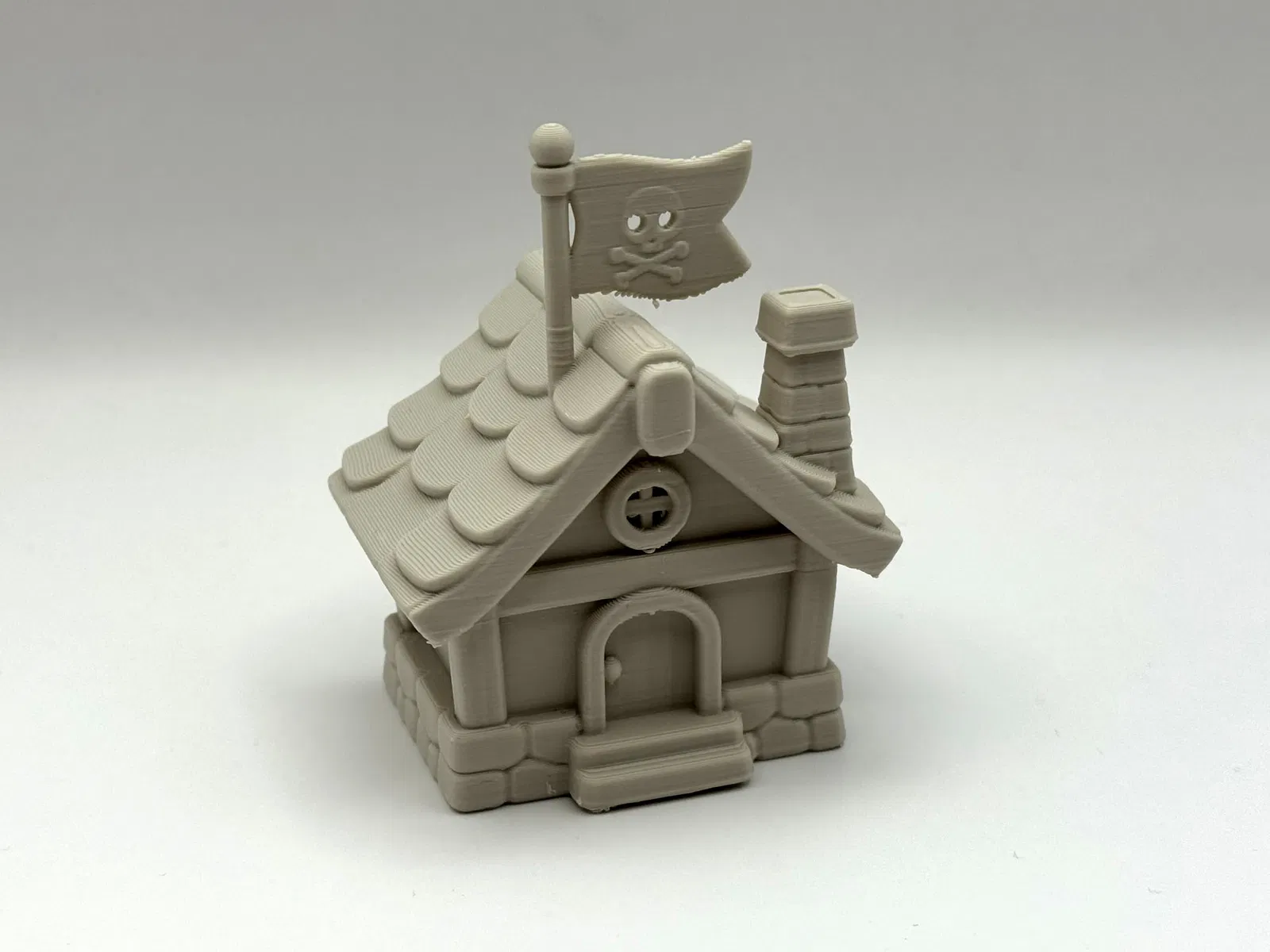Chào các thuyền trưởng! Bắt đầu một chuyến phiêu lưu sáng tạo với Căn Nhà Cướp Biển đáng yêu này – một kho báu hoàn hảo cho đội tàu in 3D của bạn. Với một ngôi nhà nhỏ xinh xắn cùng lá cờ cướp biển tung bay kiêu hãnh, đế lót bằng đá, ống khói và mái lợp ngói, thiết kế độc đáo này kết hợp giữa yếu tố giả tưởng và sự vui nhộn trong một sản phẩm nhỏ gọn.