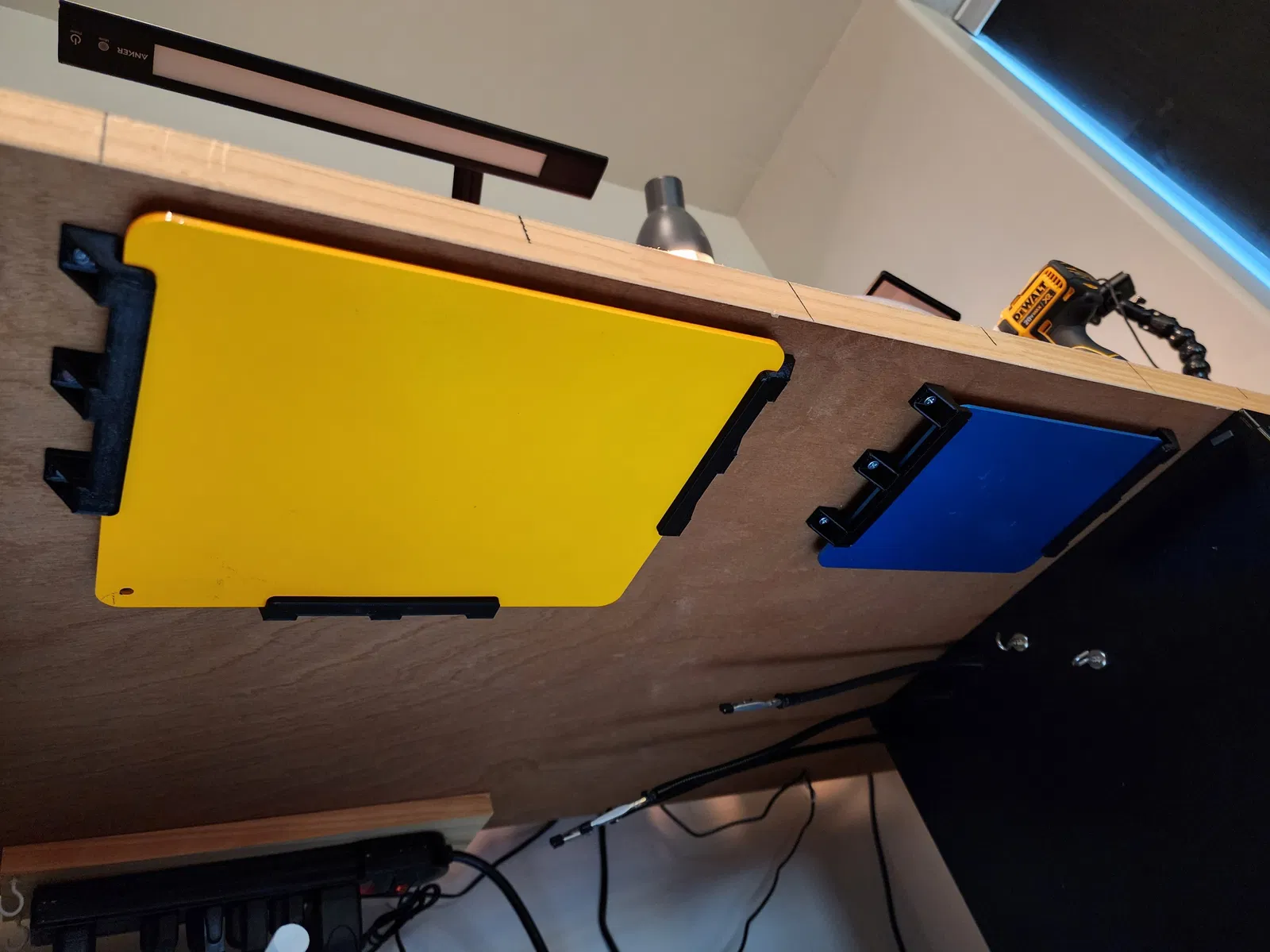 Dùng cái kẹp này để cất mấy tấm thiếc hàn mỏng te dưới gầm bàn nha. Vừa gọn gàng lại dễ lấy, tha hồ mà làm việc, không sợ vướng víu gì hết trơn á.