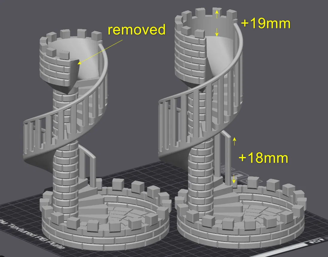 - cái thành trên chóp lâu đài cao thêm 19mm.