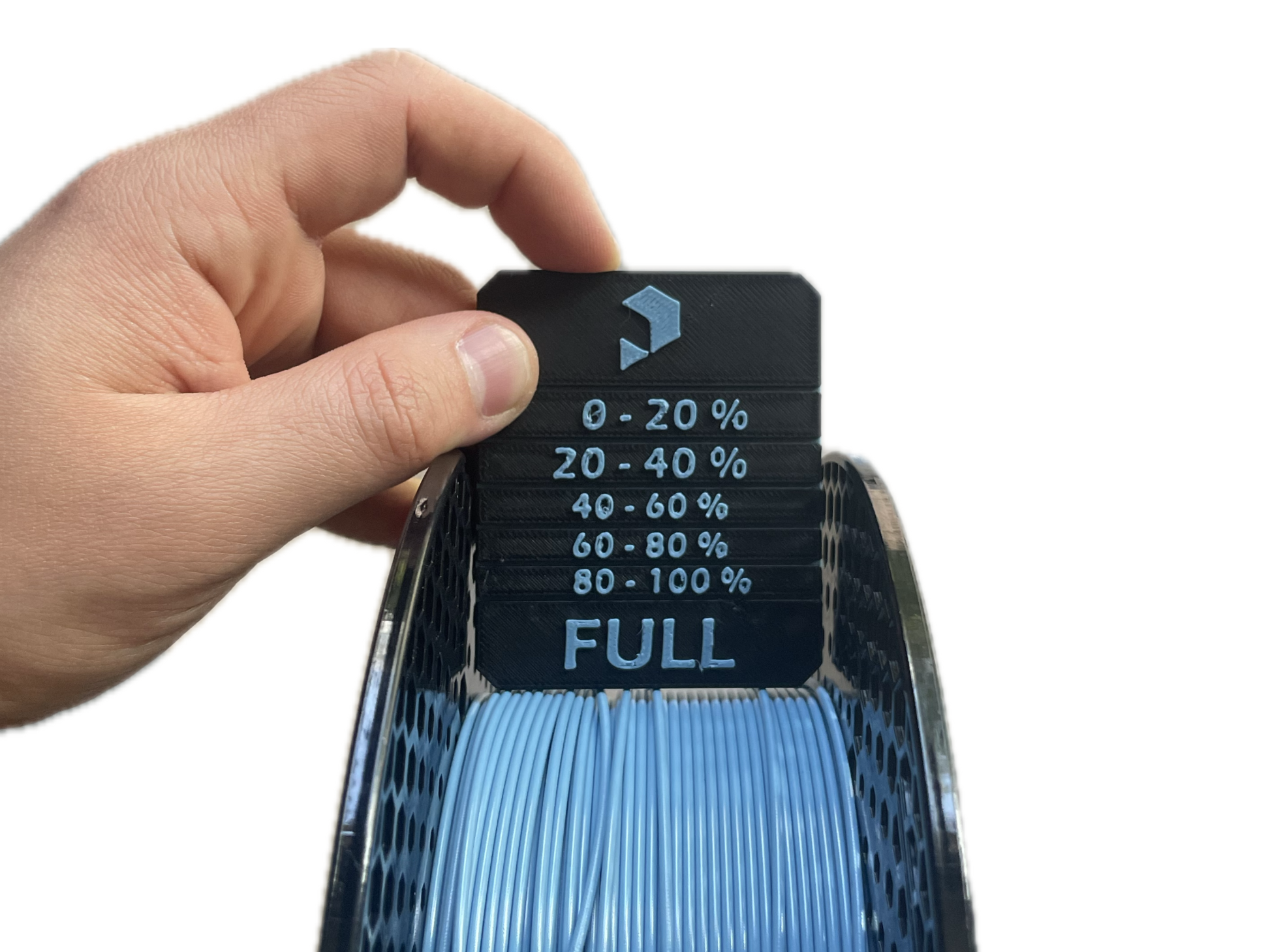 Đồng hồ đo cuộn dây tính toán thể tích, đặc biệt dành cho sợi Prusament. Có sẵn G-code một màu. Giúp bạn biết chính xác lượng sợi còn lại trên cuộn theo phần trăm, chiều dài mét, hoặc cân nặng gram.
