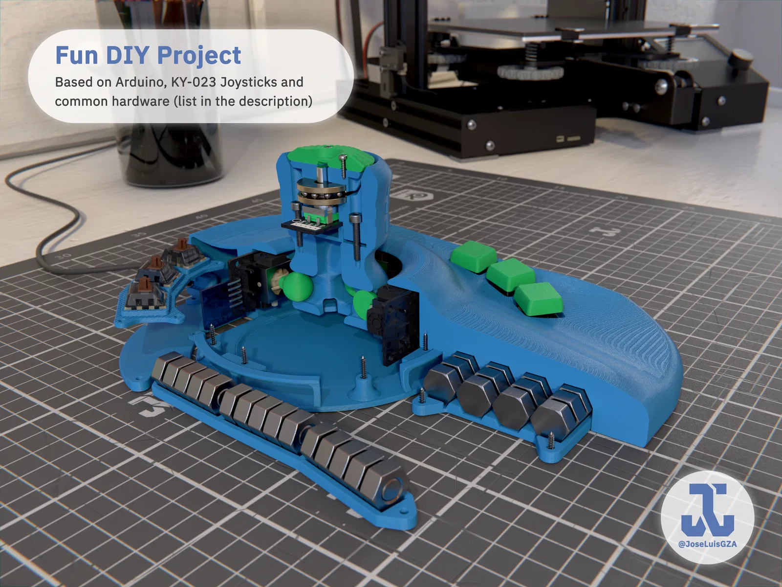 Nó sử dụng phần cứng có sẵn (xem mục "Phần cứng yêu cầu" 🡣) và yêu cầu kỹ năng in 3D, điện tử và phần mềm ở mức trung cấp. Một dự án DIY thú vị sẽ làm hài lòng mọi người thợ làm ra nó!