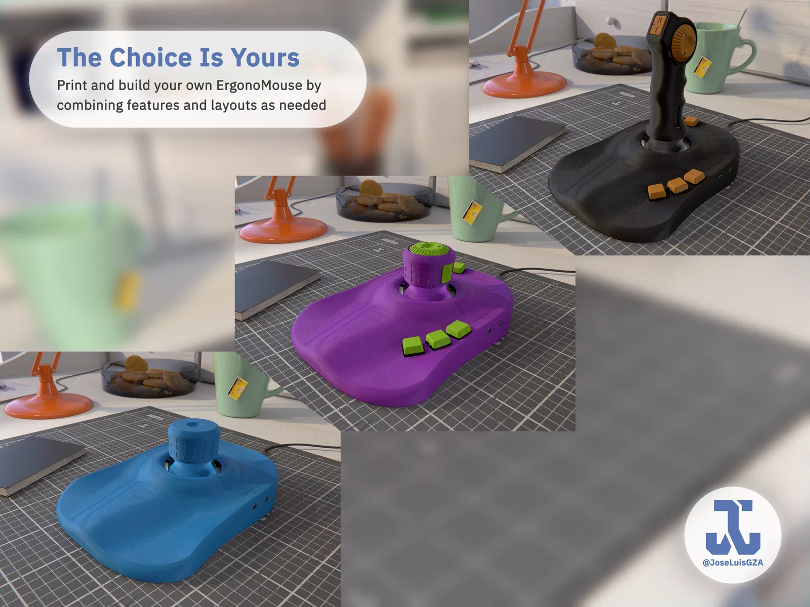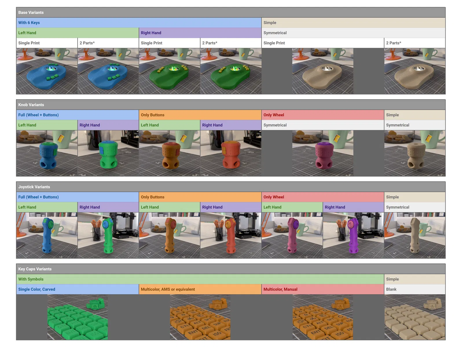Nó có nhiều tùy chọn: ErgonoMouse cung cấp nhiều lựa chọn với các tính năng khác nhau cho Phần Đế, Phần Núm Xoay và Phần Tay Cầm Joystick, với tất cả các biến thể đều có sẵn cho cả hai tay (Trái và Phải).
