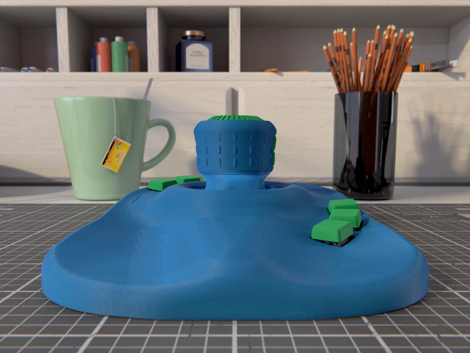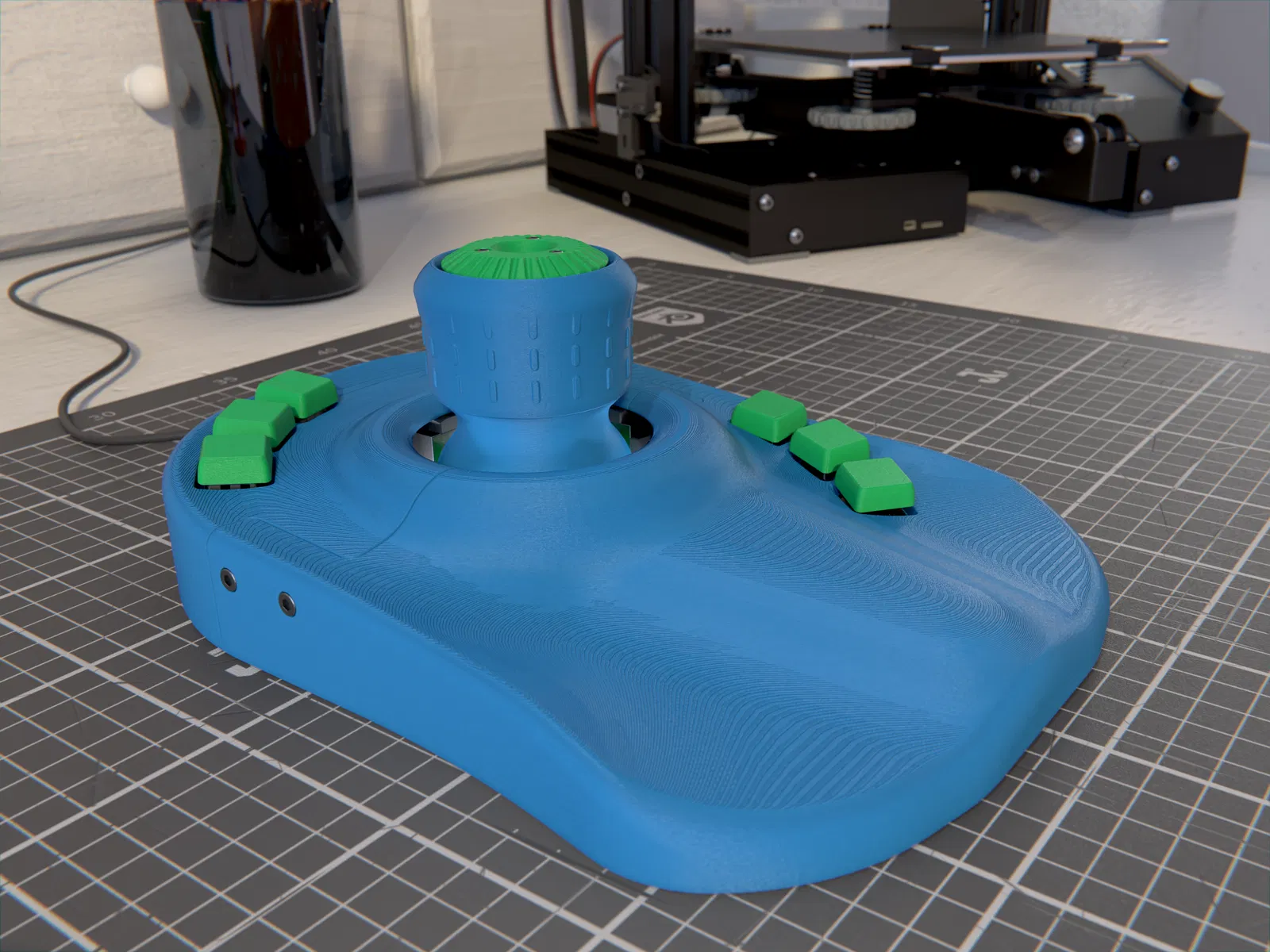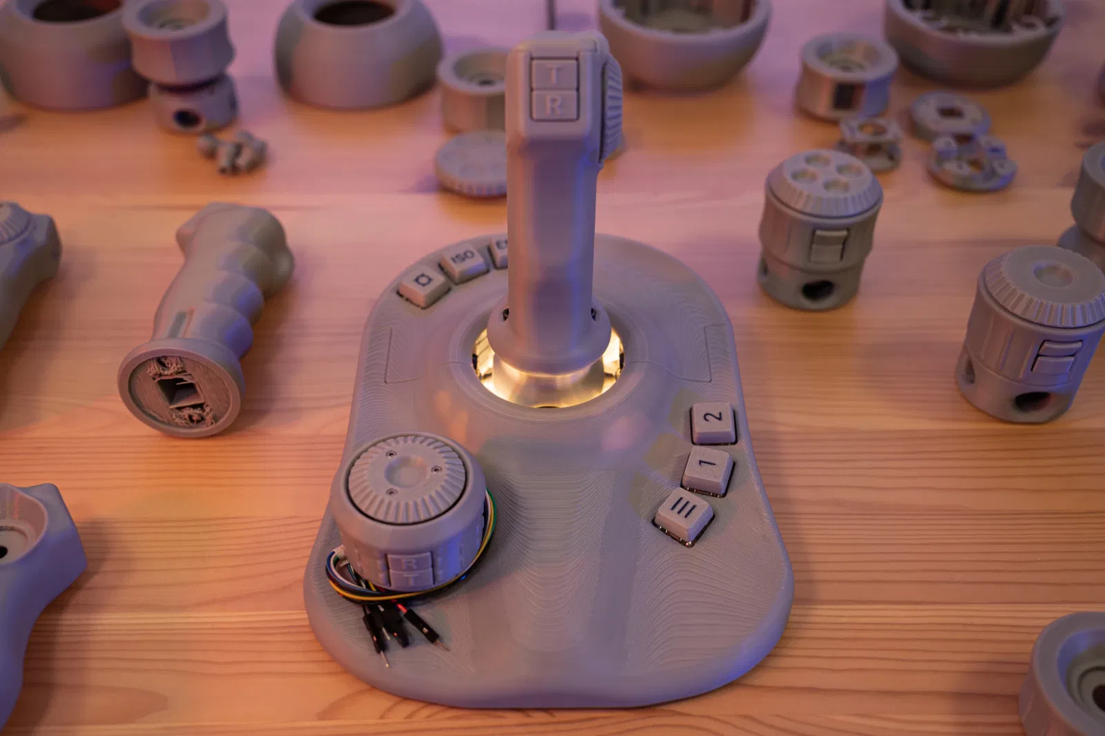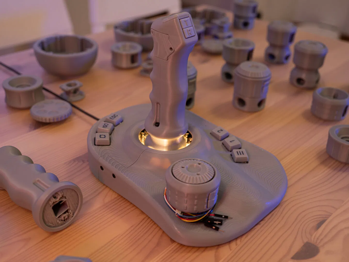 Đối với các cụm lắp ráp Núm Xoay và Joystick thì ngược lại. Cố gắng giữ chúng đủ nhẹ trong khi vẫn duy trì được độ bền nhất định. Tôi sẽ dùng 3 đến 4 lớp tường, độ dày mặt trên/dưới là 1.6 mm và 5% đến 10% infill. Các bộ phận khá nhỏ nên độ bền sẽ đến từ lớp vỏ.
