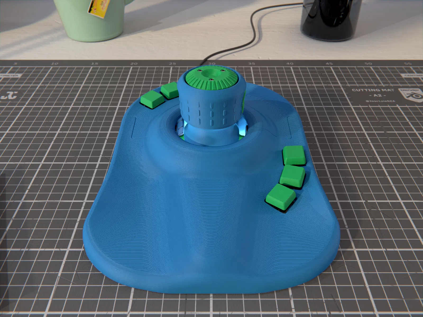 Trọng lượng không phải là vấn đề đối với cụm lắp ráp Đế (ngược lại). Để đảm bảo độ bám tốt cho vít và độ bền tổng thể, tôi khuyên bạn nên in với 4 đến 5 lớp tường, độ dày mặt trên/dưới là 1.6 mm và 10% đến 20% infill. Núm Xoay và Joystick: