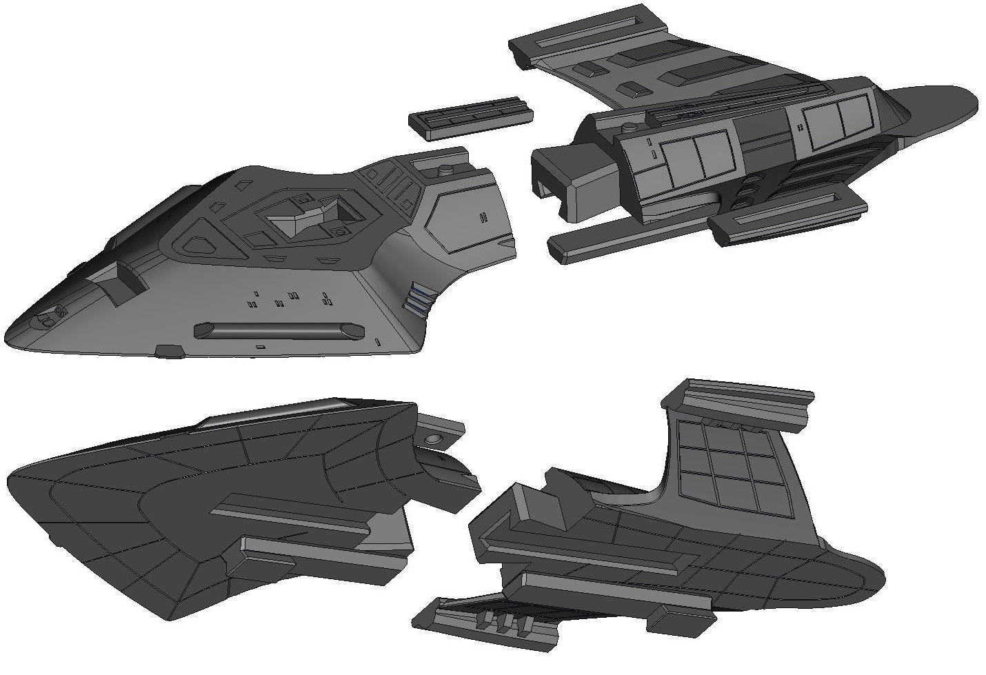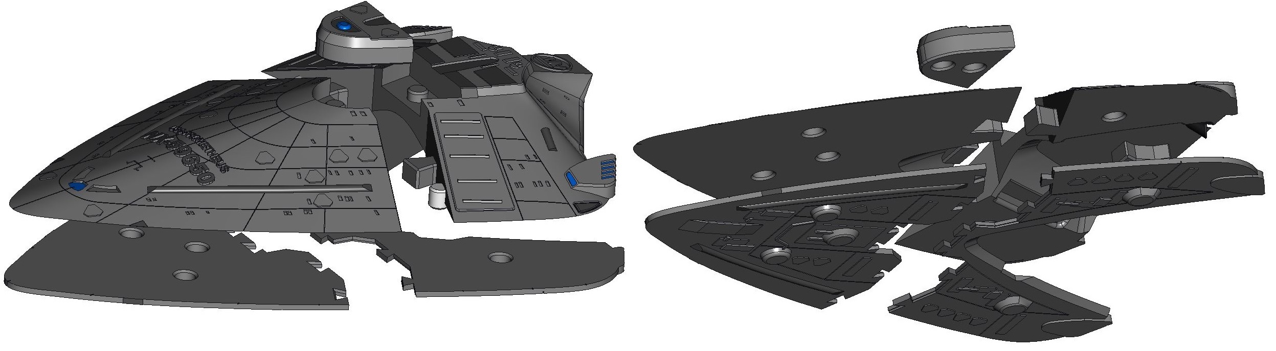 Đây là mô hình in 3D của lớp Prometheus, NX-59650 Prometheus, đến từ Star Trek. Các bộ phận có màu khác nhau được tách ra để dễ in hơn.