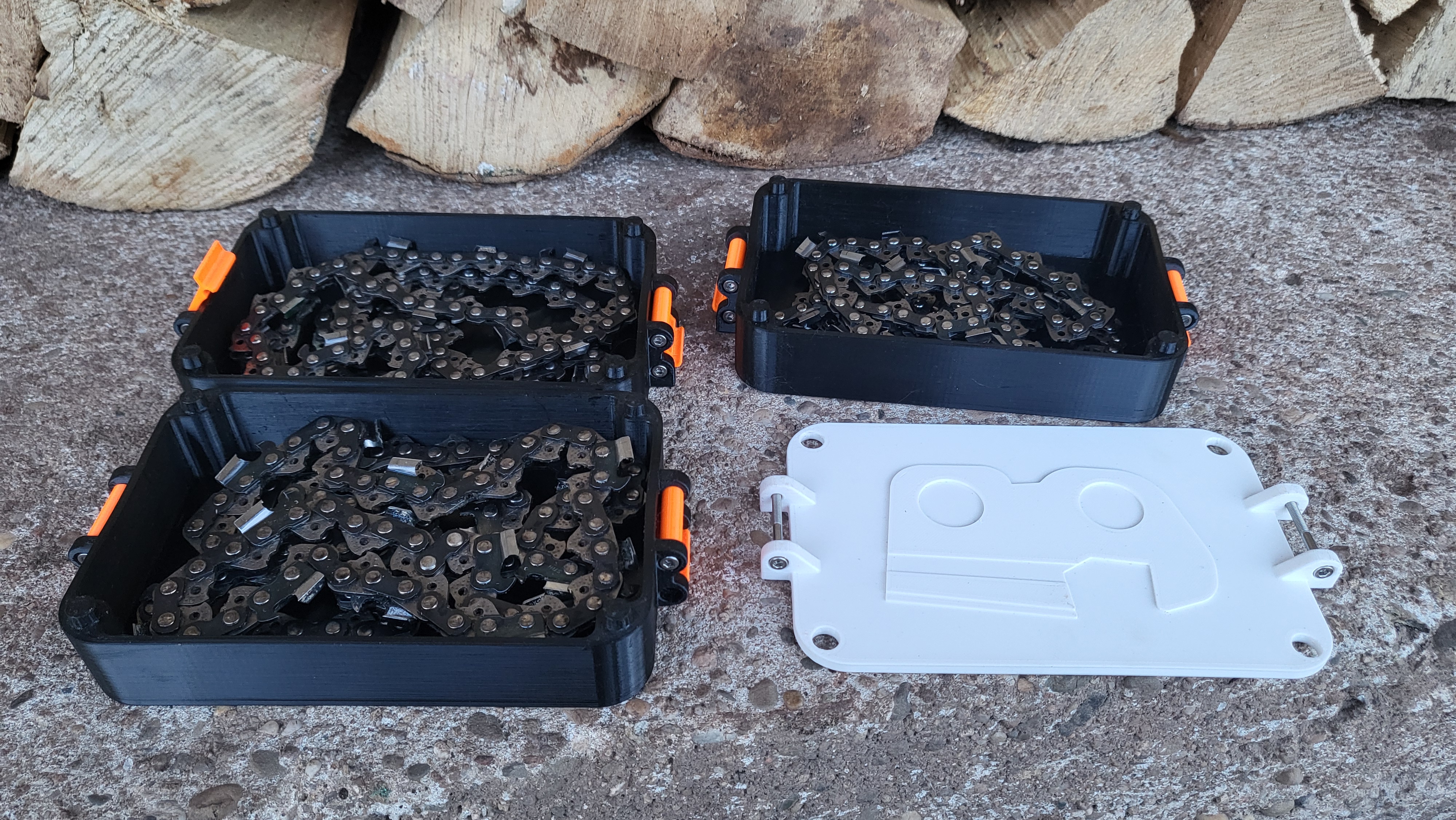 Chiếc hộp này giúp bạn cất giữ lưỡi cưa hoặc các vật dụng khác một cách gọn gàng. Thiết kế có thể xếp chồng lên nhau, dễ dàng mở rộng và kết nối bằng kẹp, giúp bạn tùy chỉnh không gian lưu trữ theo ý muốn. Có chỗ ghi nhãn tiện lợi.