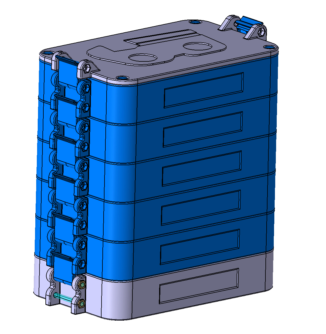 Nhờ mấy cái kẹp bên hông mà chồng hộp được giữ chặt lại với nhau, và mình có thể mở từng cái hộp riêng lẻ.