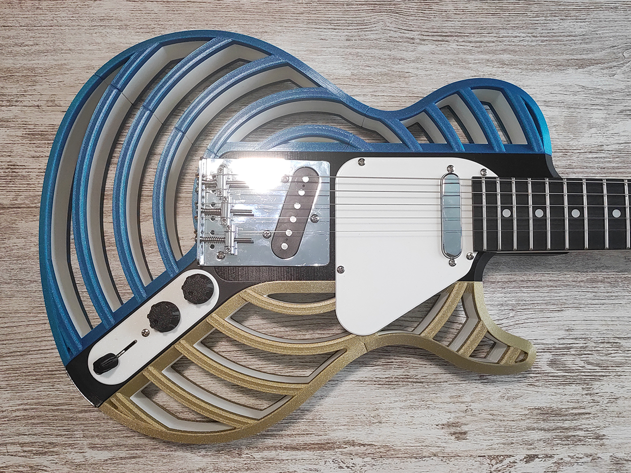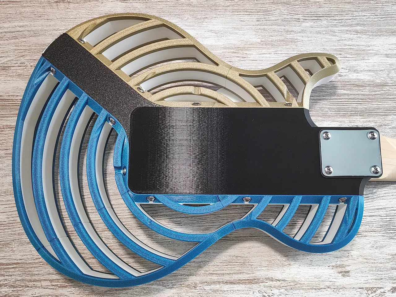 Tạo cây đàn guitar điện tùy chỉnh của riêng bạn với Modulcaster - Les Paul, một thiết kế đàn guitar điện module in 3D. Dễ dàng thay đổi vẻ ngoài của nhạc cụ bằng cách hoán đổi các bộ phận, lấy cảm hứng từ Prusacaster và bộ dụng cụ Harley Benton.