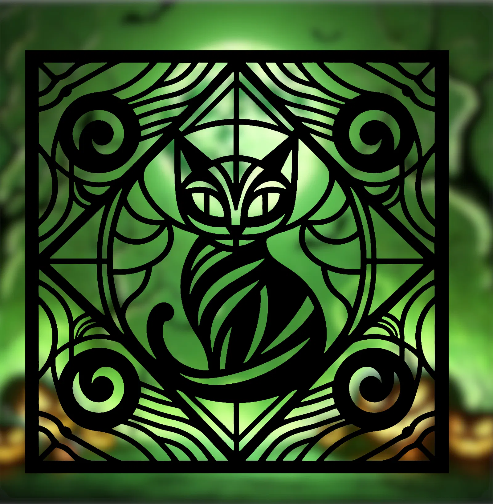 Series Halloween Ma Quái 2024 – Mèo Đen Phong Cách Kính Màu (Nghệ Thuật Treo Tường Hình Học 2D)