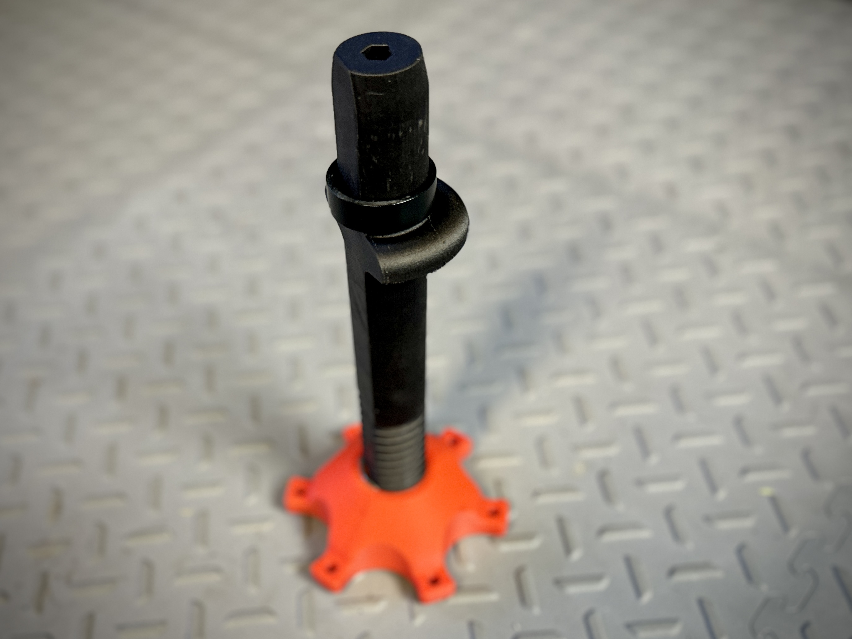 Tao đã in cái đồ nghề chính bằng PA6-CF độ phân giải cao, cái này hơi thừa nhưng làm vậy cũng tốt cho việc luyện tập. Cái đai ốc thì in hơi lười ở lớp 0.28mm bằng PLA thường. Sự kết hợp vật liệu ban đầu hơi khít chặt, nhưng đã nới lỏng một chút sau khi chạy đai ốc vài lần và thêm ít mỡ xe đạp.