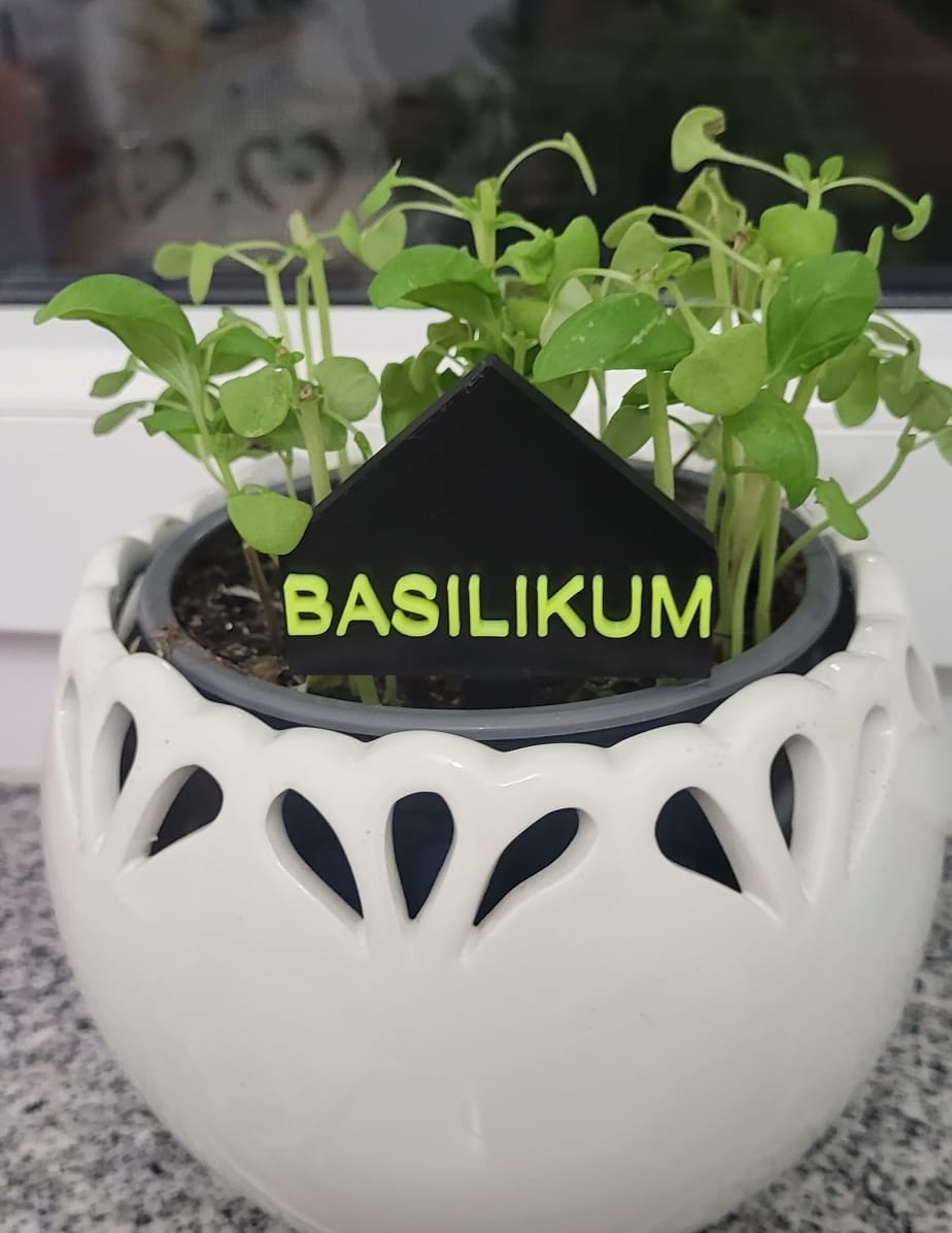 Tấm bảng tên cây trồng giúp bạn ghi nhãn chậu cây, để dễ dàng theo dõi sau khi gieo hạt. Bản in được căn chỉnh với chữ hướng lên trên, độ cao lớp 0.2mm, 15% Infill. Chất liệu PLA+. Không cần Support.