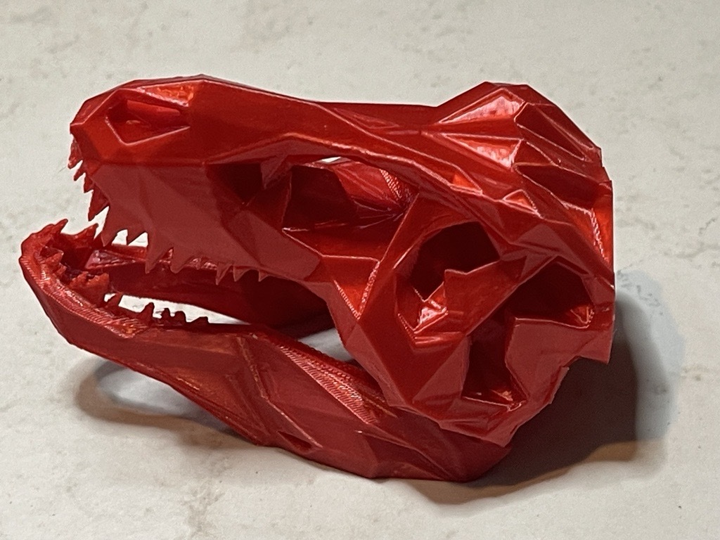 Một bộ xương đầu T-Rex low poly, in không cần hỗ trợ.