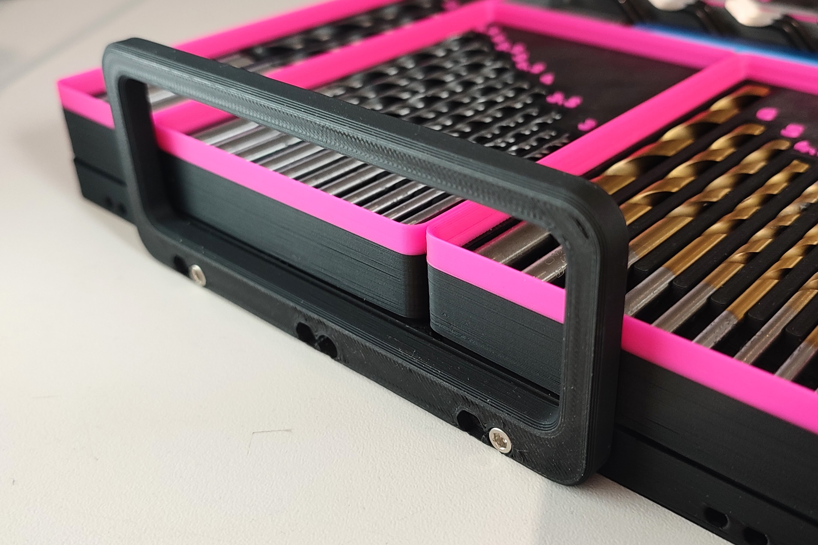 Thêm tay cầm cho tấm đế Gridfinity có thể vặn vít của Plastic Flows! Thiết kế này tương thích với vít M3 đầu 5.5mm, có thể tùy chỉnh và in dễ dàng bằng PLA với các cài đặt gợi ý.