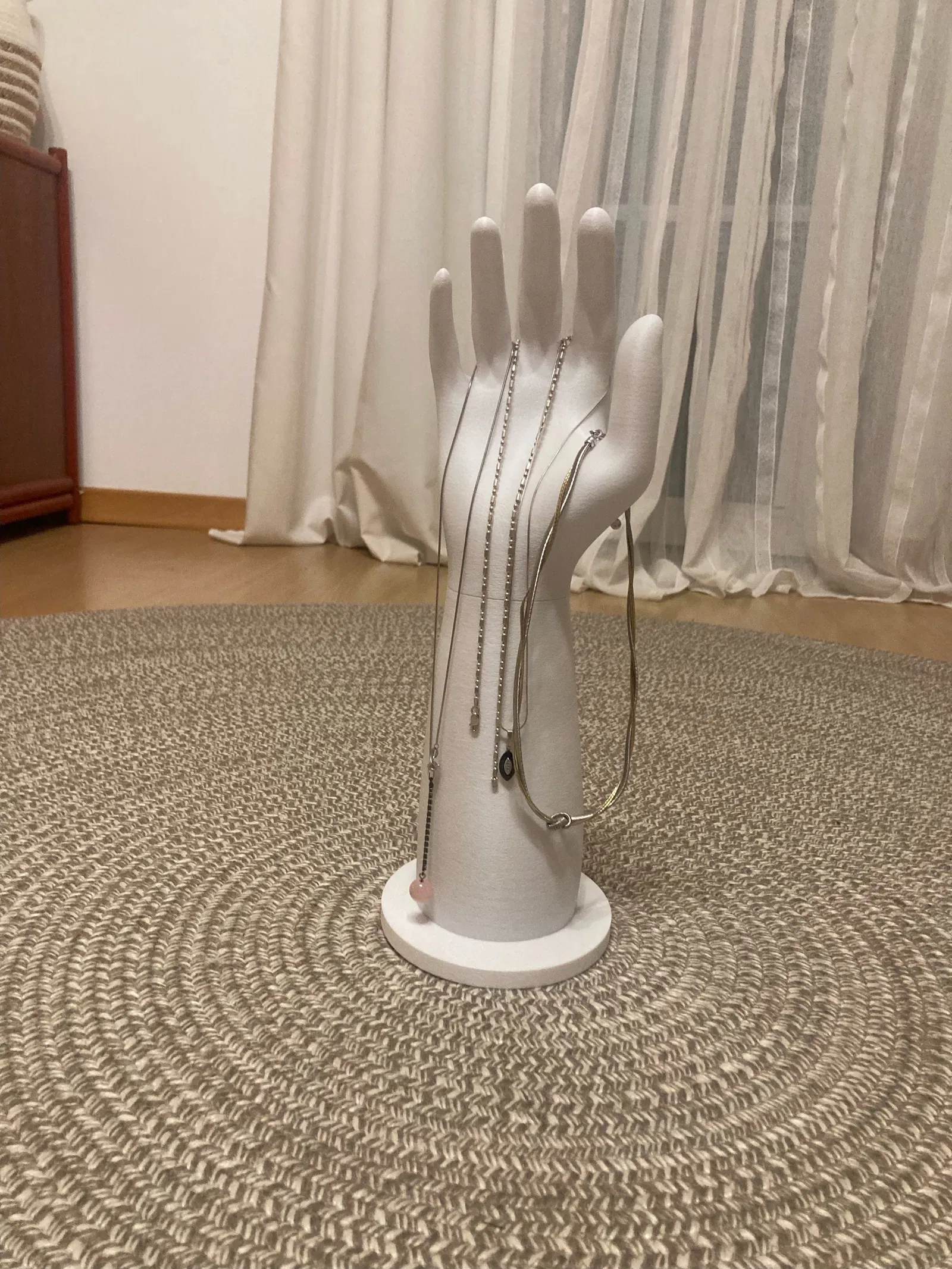 Mẫu đế giữ trang sức hình cánh tay độc đáo, thích hợp để treo nhẫn, dây chuyền và nhiều món phụ kiện khác. Sản phẩm được remix từ mẫu của Hatsyflatsy, mang đến sự tiện lợi và phong cách cho không gian của bạn.