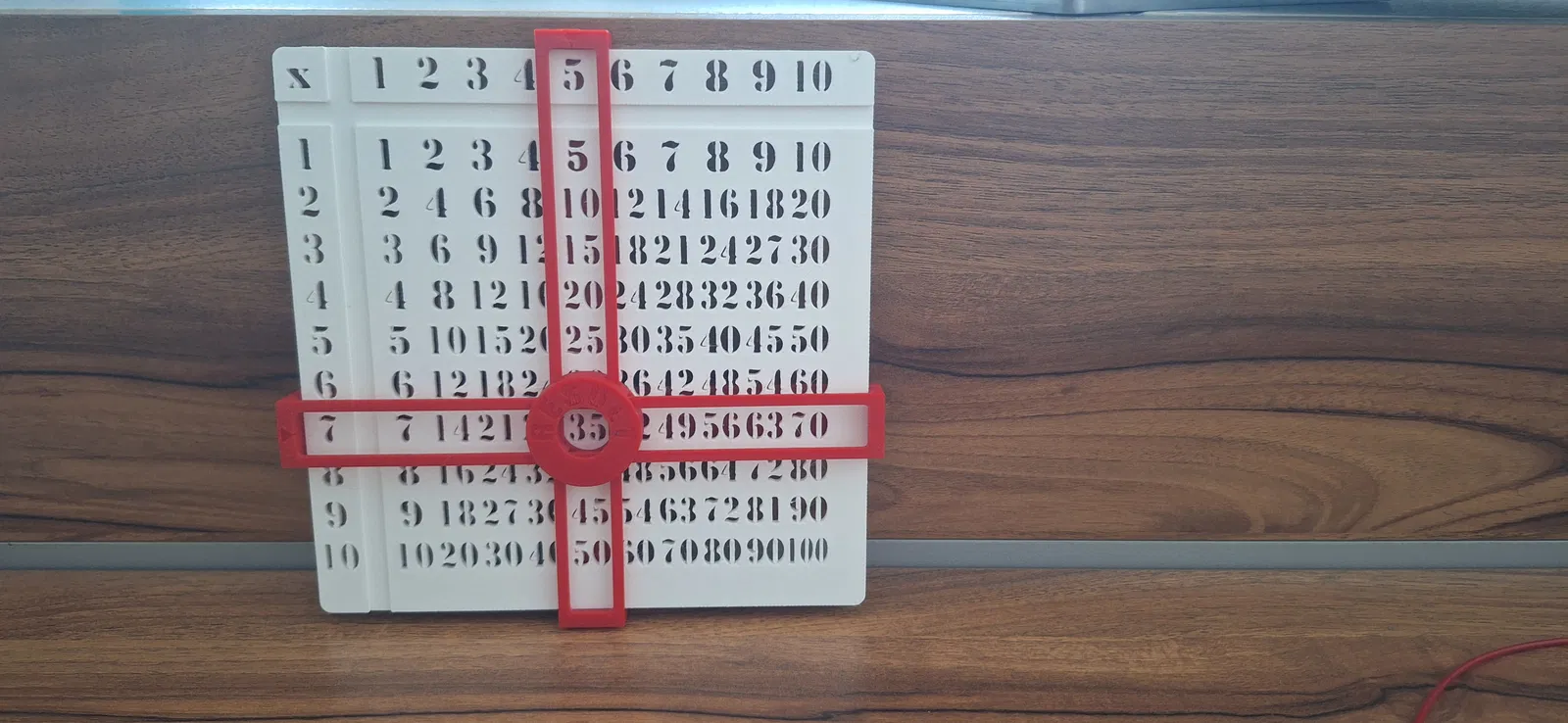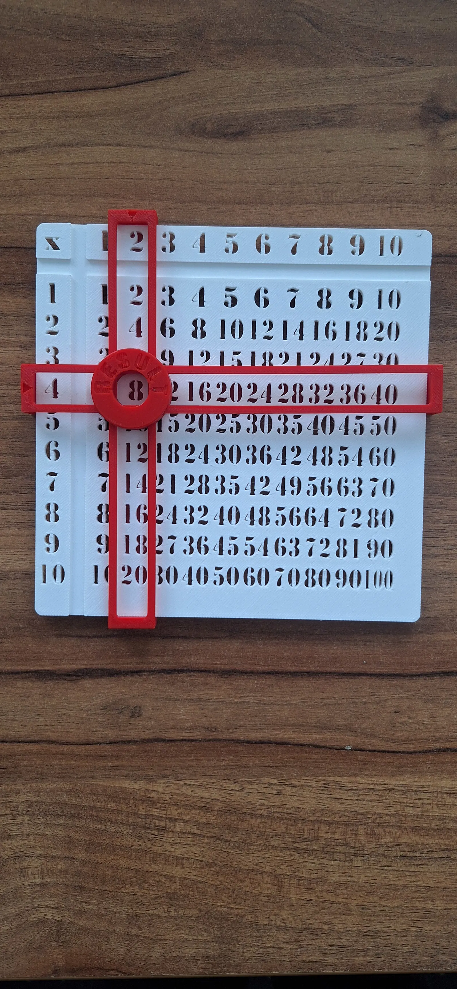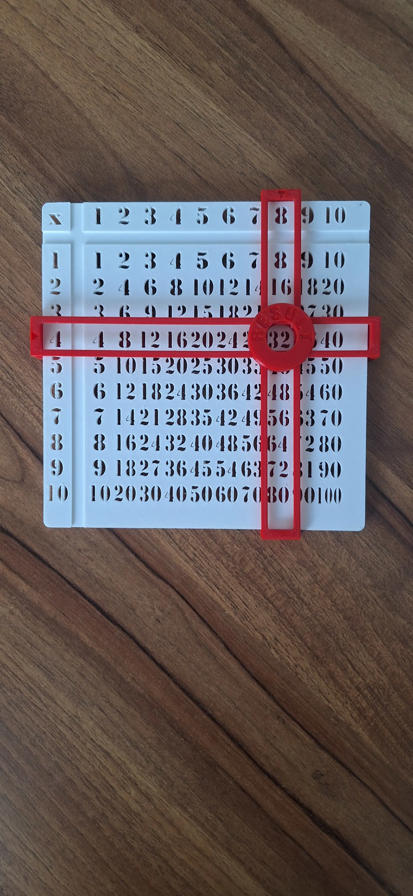 Một bảng cửu chương độc đáo, hoạt động như một máy tính thủ công, không yêu cầu AMS. Dễ dàng lắp ráp và sử dụng để học toán, được in từ PLA màu trắng và đỏ với kích thước 150mm x 150mm.