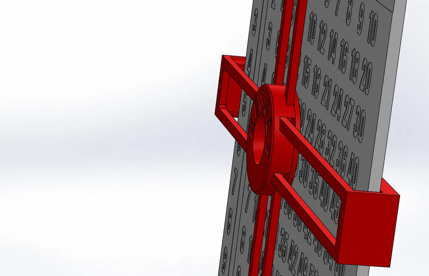 Tuy nhiên, mọi người không cần dùng AMS để in nó vì vòng xoay được làm bằng một màu duy nhất và các con số được khoét lỗ. Bảng này có thanh trượt ngang và dọc, cho phép chúng ta chọn số từ hàng đầu tiên từ trên xuống và nhân nó với số từ cột đầu tiên bên trái. Kết quả nhân được đọc từ vòng tròn nằm ở giao điểm của các thanh trượt. Hướng dẫn lắp ráp bảng được hiển thị trong chế độ xem CAD. Bảng có kích thước 150mm x 150mm. Các bộ phận được in từ PLA màu trắng và đỏ.
