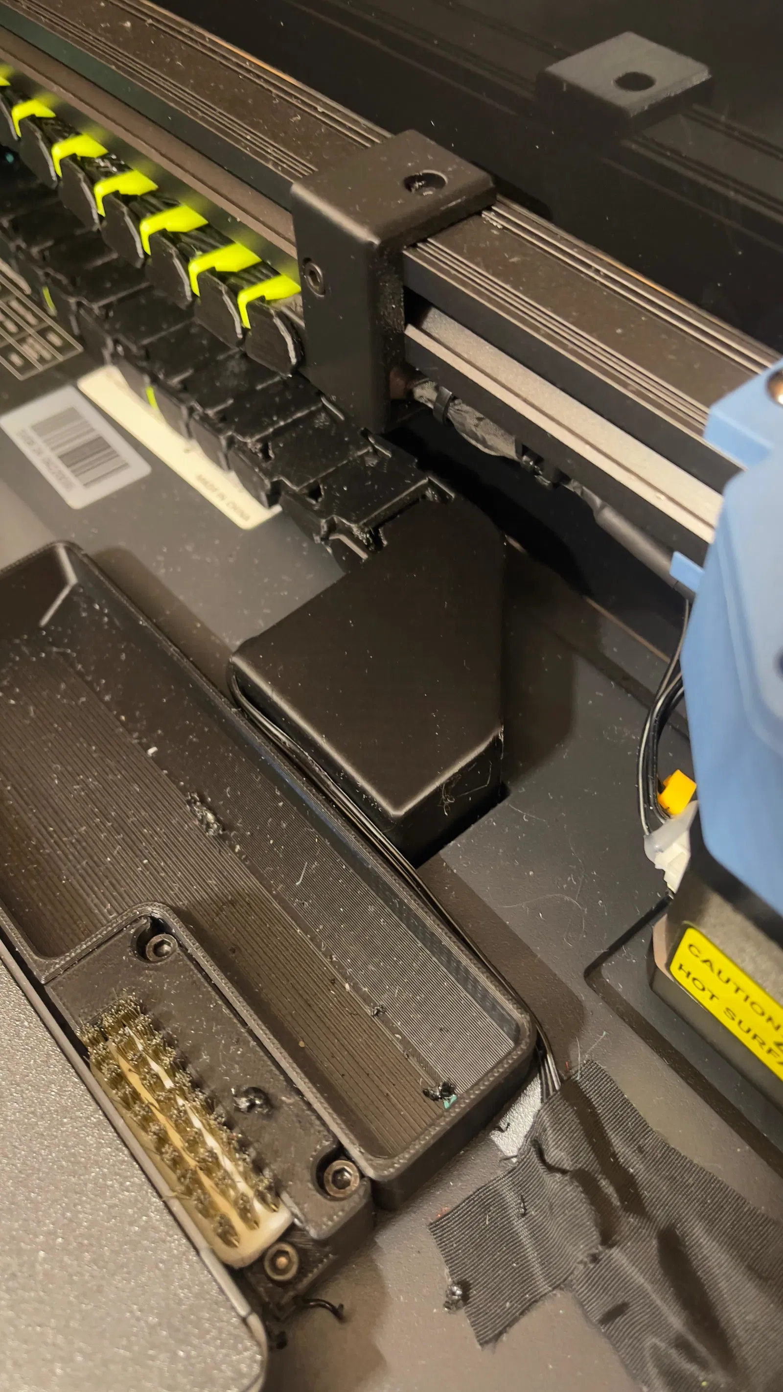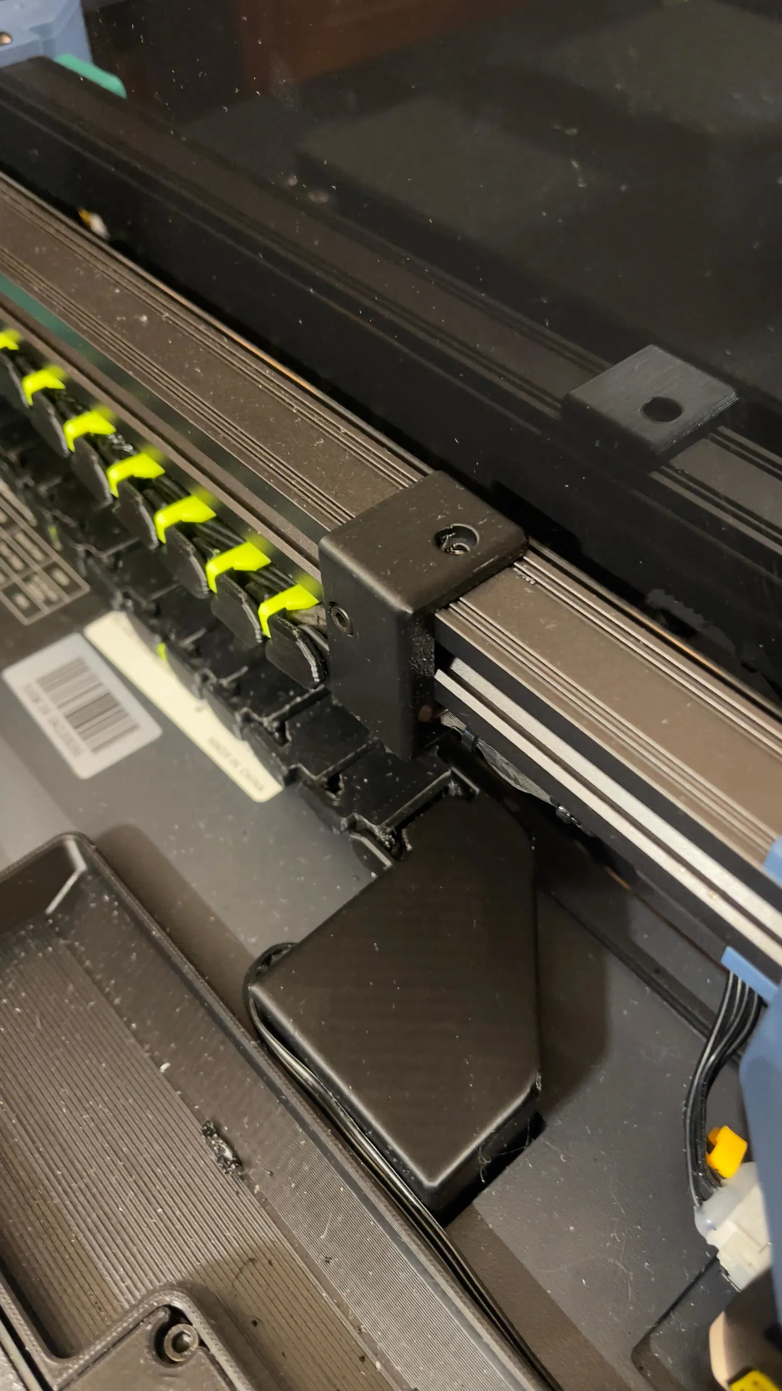 Có 2 phiên bản: một phiên bản dành cho những người luồn dây công cụ từ phía trên. Tải về file “cable chain rail mount.stl”. Nếu cần, chúng tôi có một phiên bản dành cho dây công cụ đi từ vị trí ban đầu. Chỉ cần tải về file này "cable chain rail mount with toolhead cables.stl".