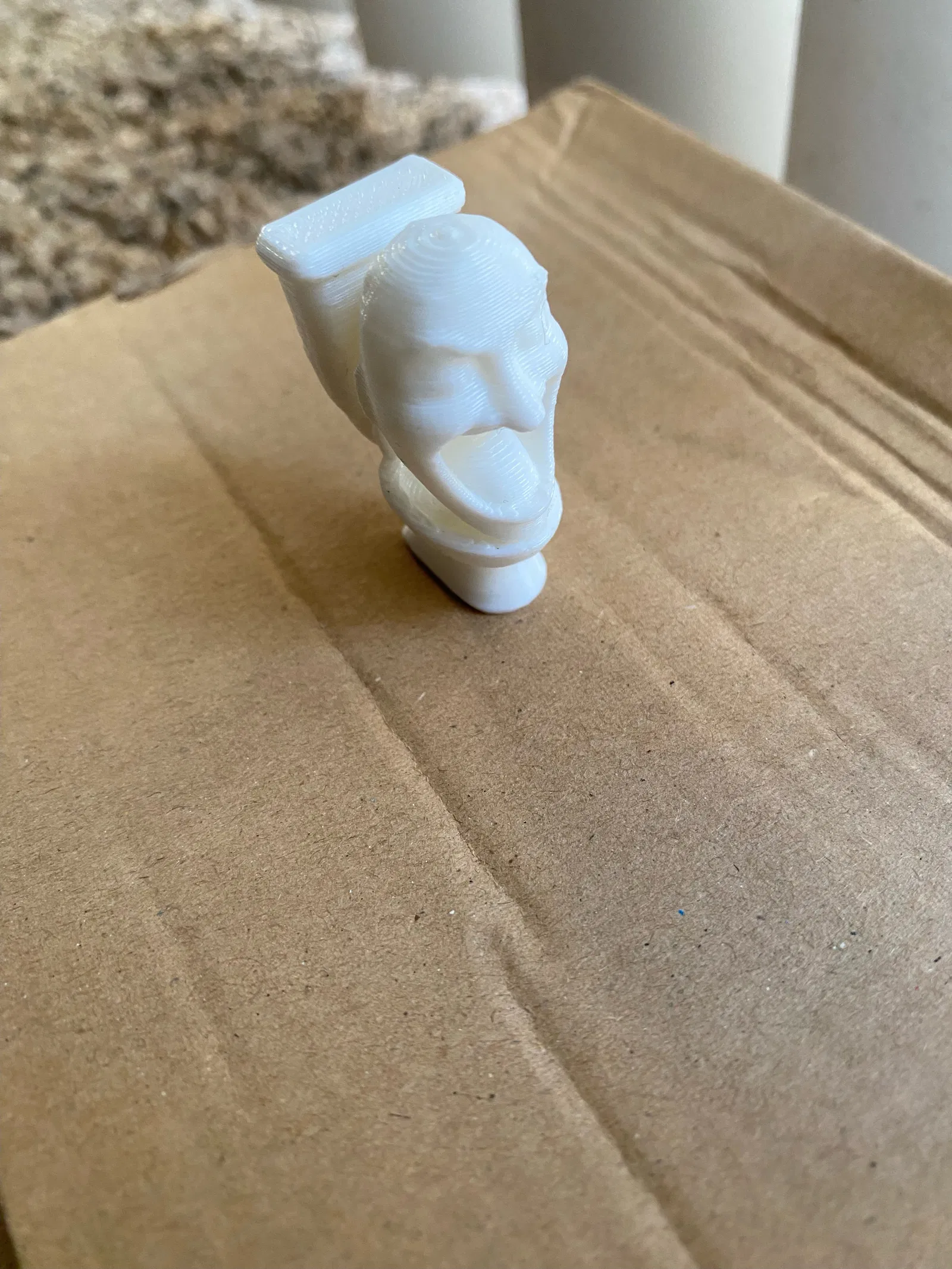 Một bức tượng Skibidi Toilet được thiết kế cho in 3D. Mẫu nhỏ in không cần support, mẫu lớn có thể cần support ở miệng để cho ra sản phẩm đẹp nhất.
