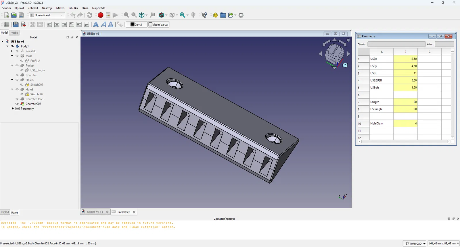 Cập nhật v3: mô hình FreeCAD hoàn toàn có tham số, mô hình STEP