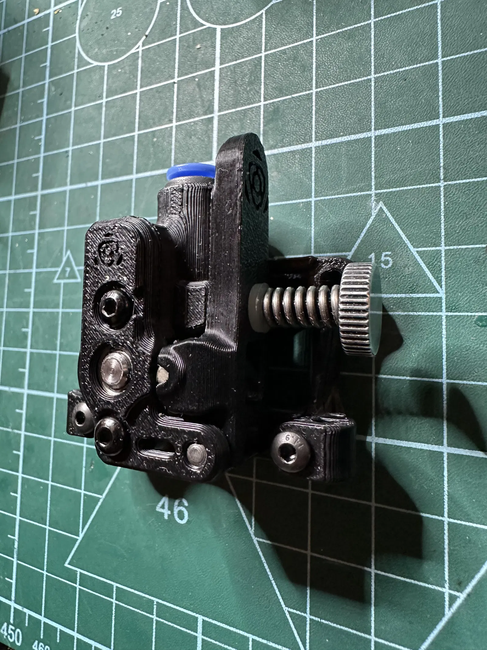 Theo cài đặt in trong repo Sherpa Mini github, in phần thân chính, cánh tay giữ, và nắp trước. Đồng thời in phần vỏ sau tiêu chuẩn từ repo Sherpa Mini github.