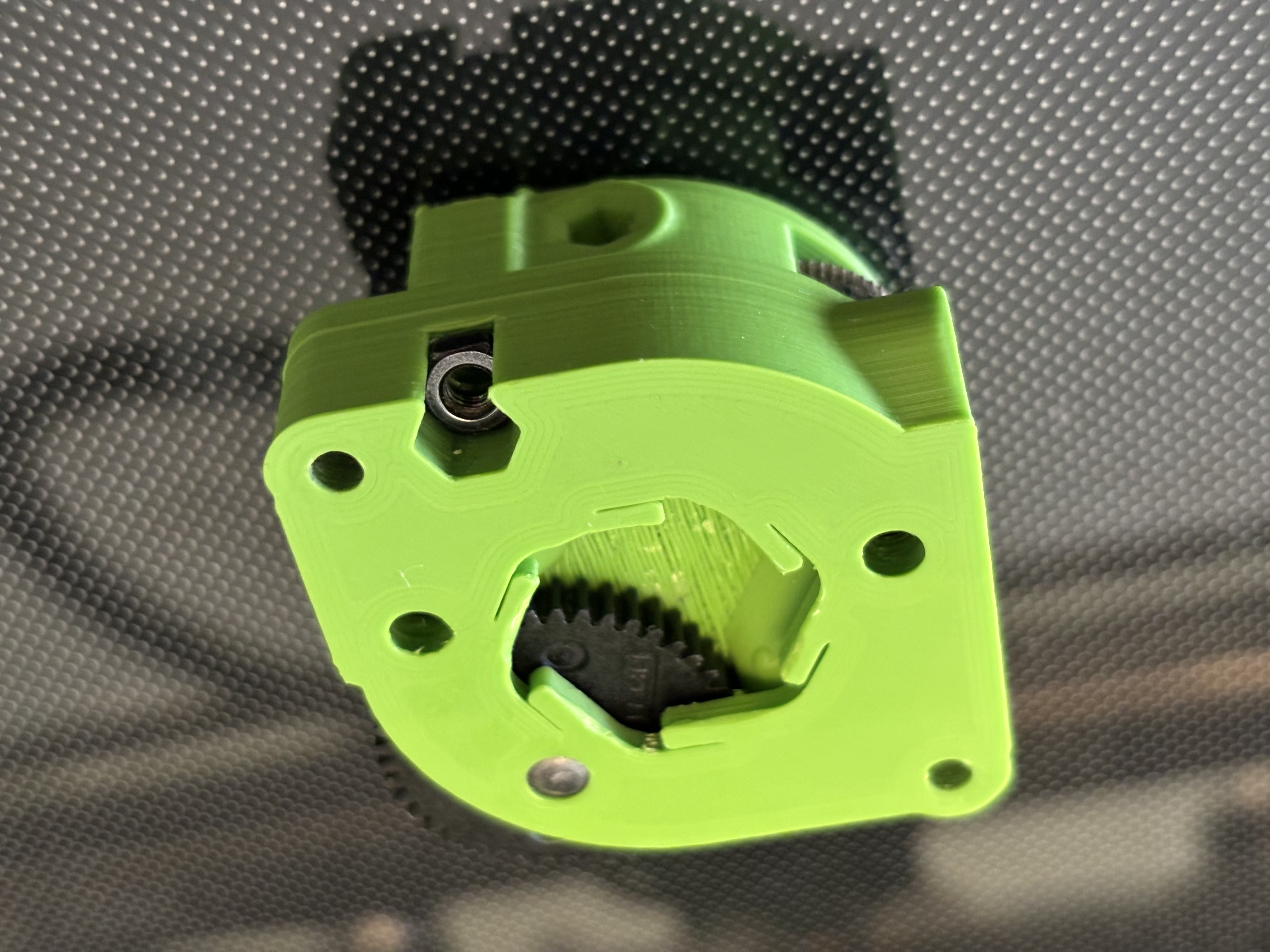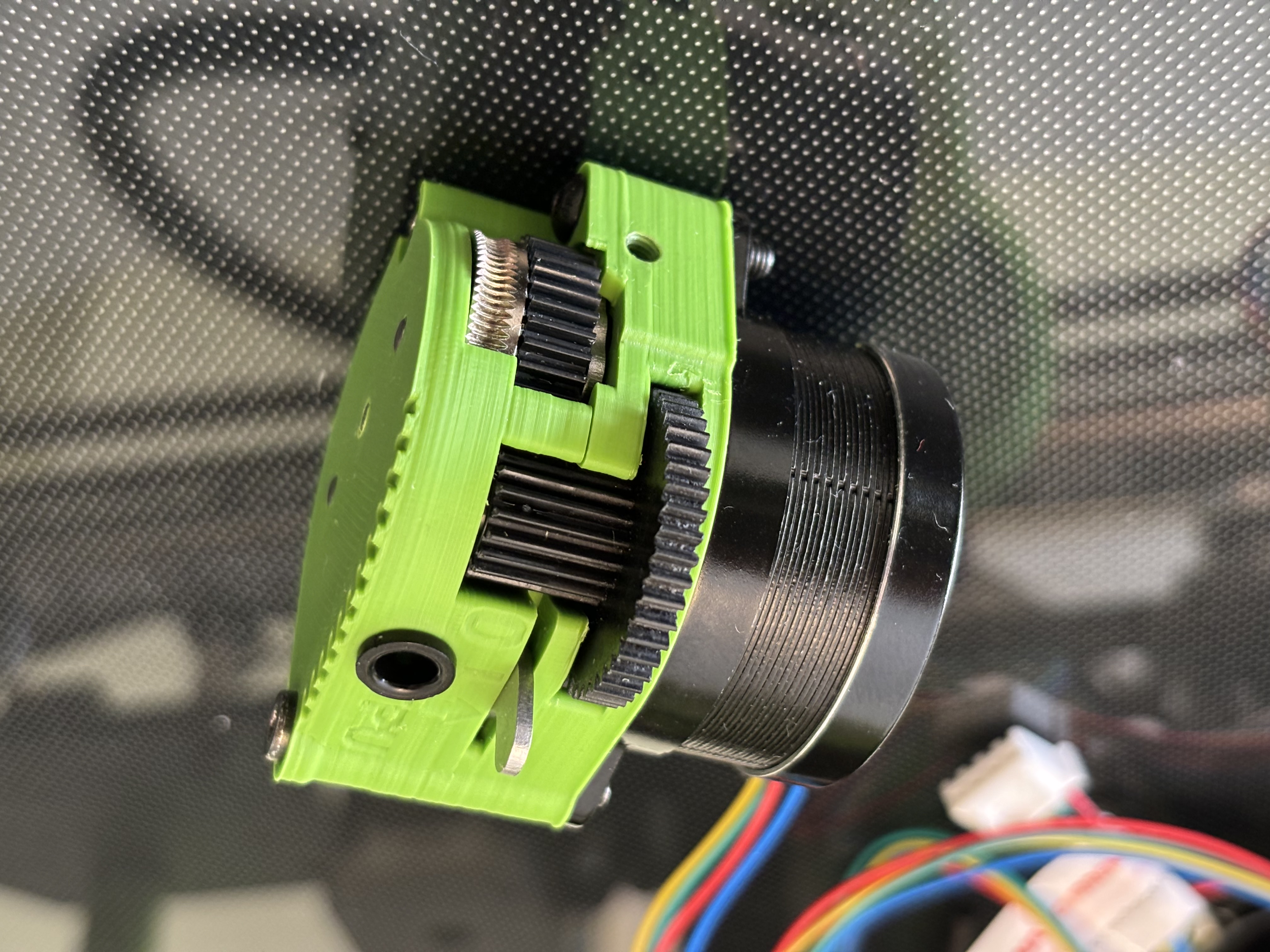 Hộp mới này (ABS hoặc ASA) gồm hai phần, tương tự như hộp Lite V2, và có ba điểm gắn vít để khớp với các điểm gắn trên xe đầu in K1. Để tránh các lỗ vít gắn xung đột với bộ căng LGX bên trong, các lỗ được ren trực tiếp vào thân nhựa vì không có chỗ cho các chèn ren bằng đồng.