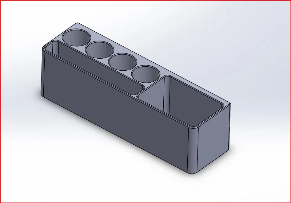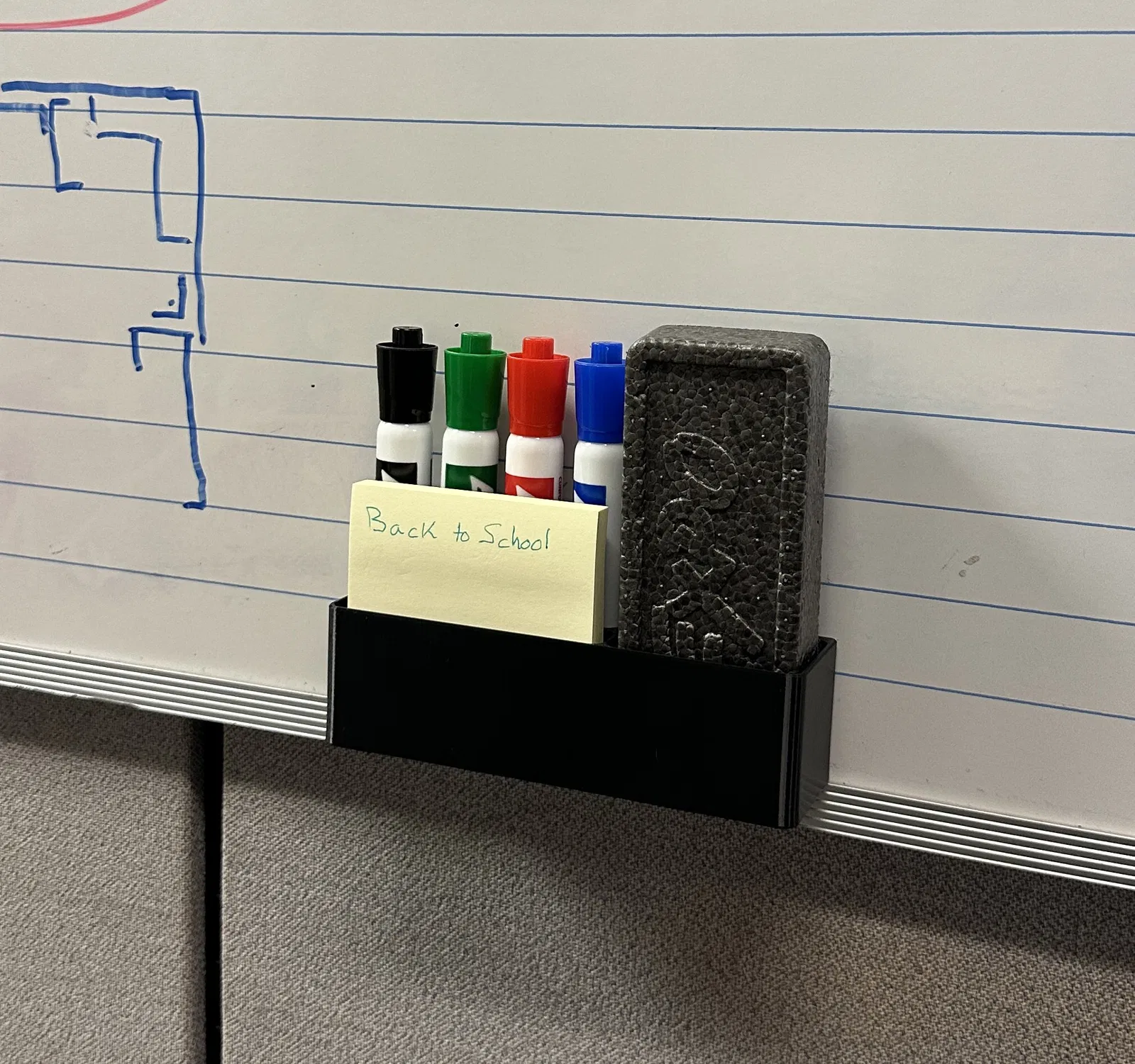 Đây là một khay đựng đồ đơn giản cho bảng trắng để bạn giữ bút dạ khô hiệu Expo và cục tẩy của mình. Một chỗ bổ sung có thể để giấy ghi chú dính (sticky notes) rất tiện. Mặt sau có 10 chỗ để gắn nam châm. Bạn không cần dùng hết cả 10 nam châm, nhưng vì bảng trắng rất trơn, nên có tùy chọn sử dụng thêm nam châm để giữ chắc hơn. Đây là một mẫu in đơn giản, nhưng tôi dùng nó mỗi ngày tại chỗ làm kỹ sư của mình.