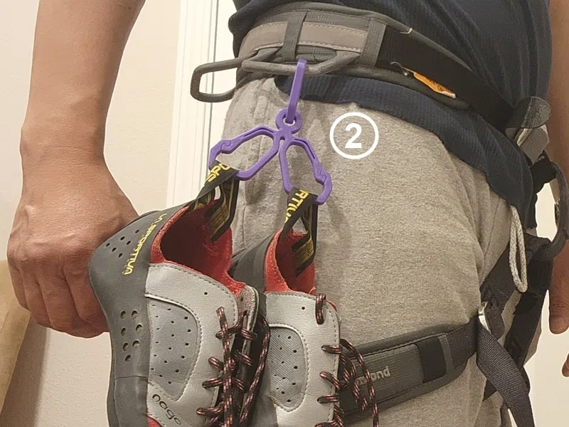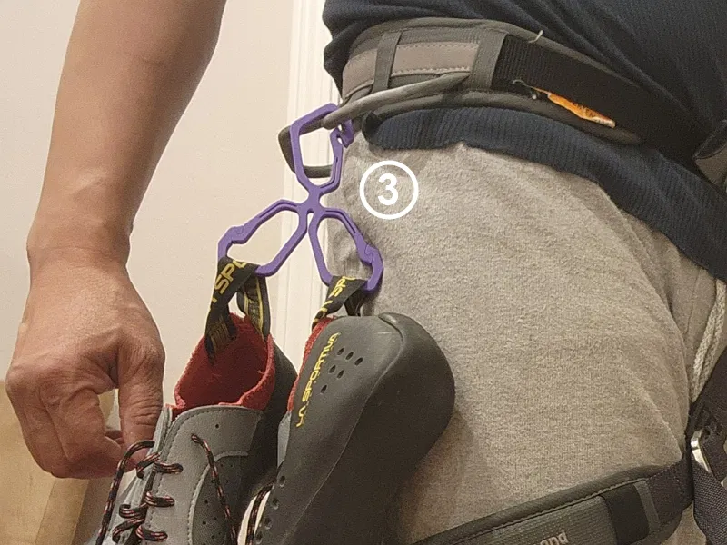 1. Gắn vào đai leo núi của bạn hoặc bất kỳ đâu bạn mang giày leo núi.
