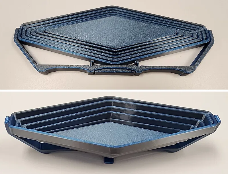 - PLA có rất nhiều tùy chọn màu sắc hấp dẫn nhưng hãy cẩn thận vì nó có xu hướng giòn và các kẹp có thể bị gãy. Nếu bạn in bằng PLA, mình gợi ý phiên bản chỉ có khay võng, hoặc phiên bản không có kẹp.