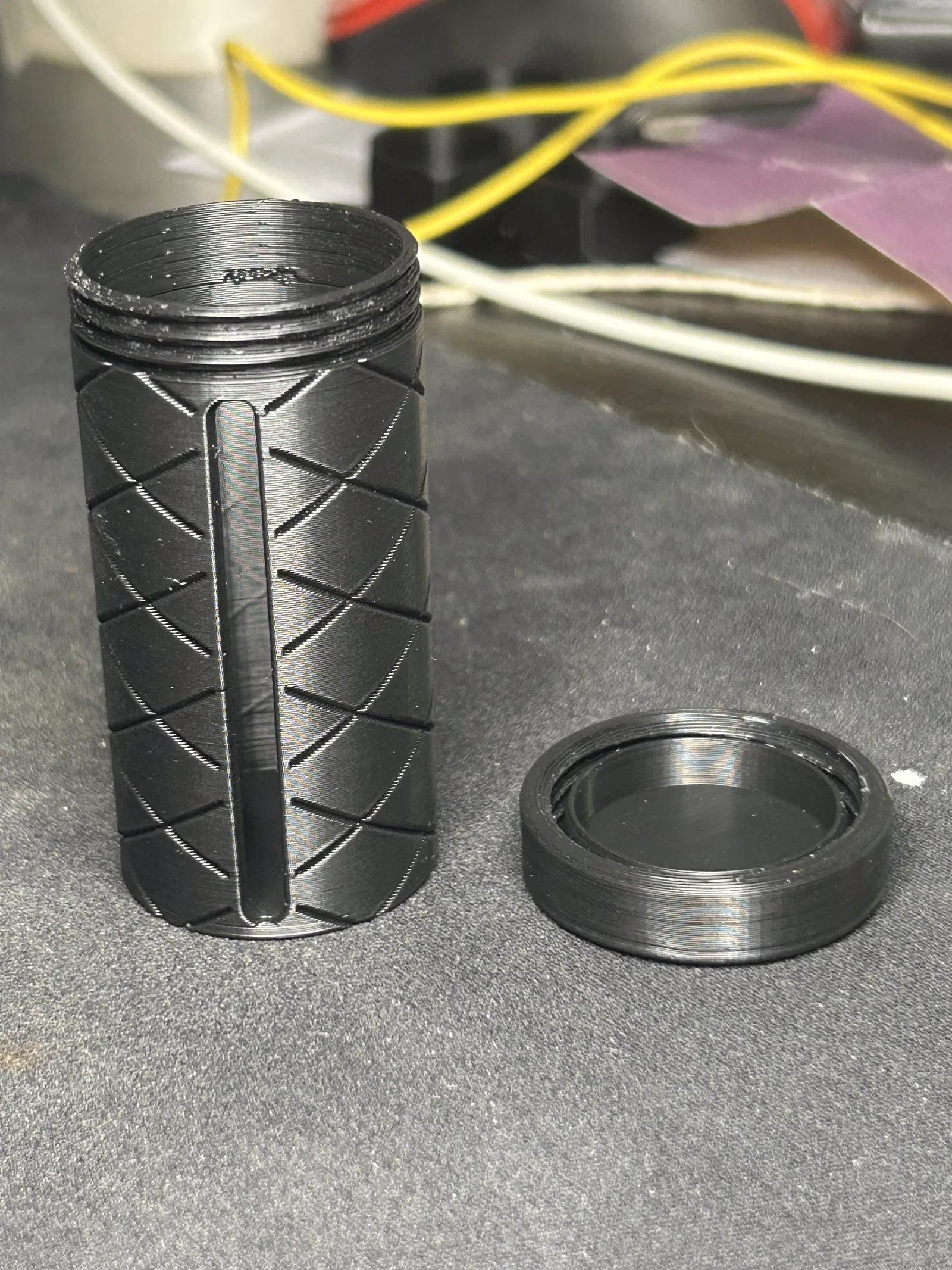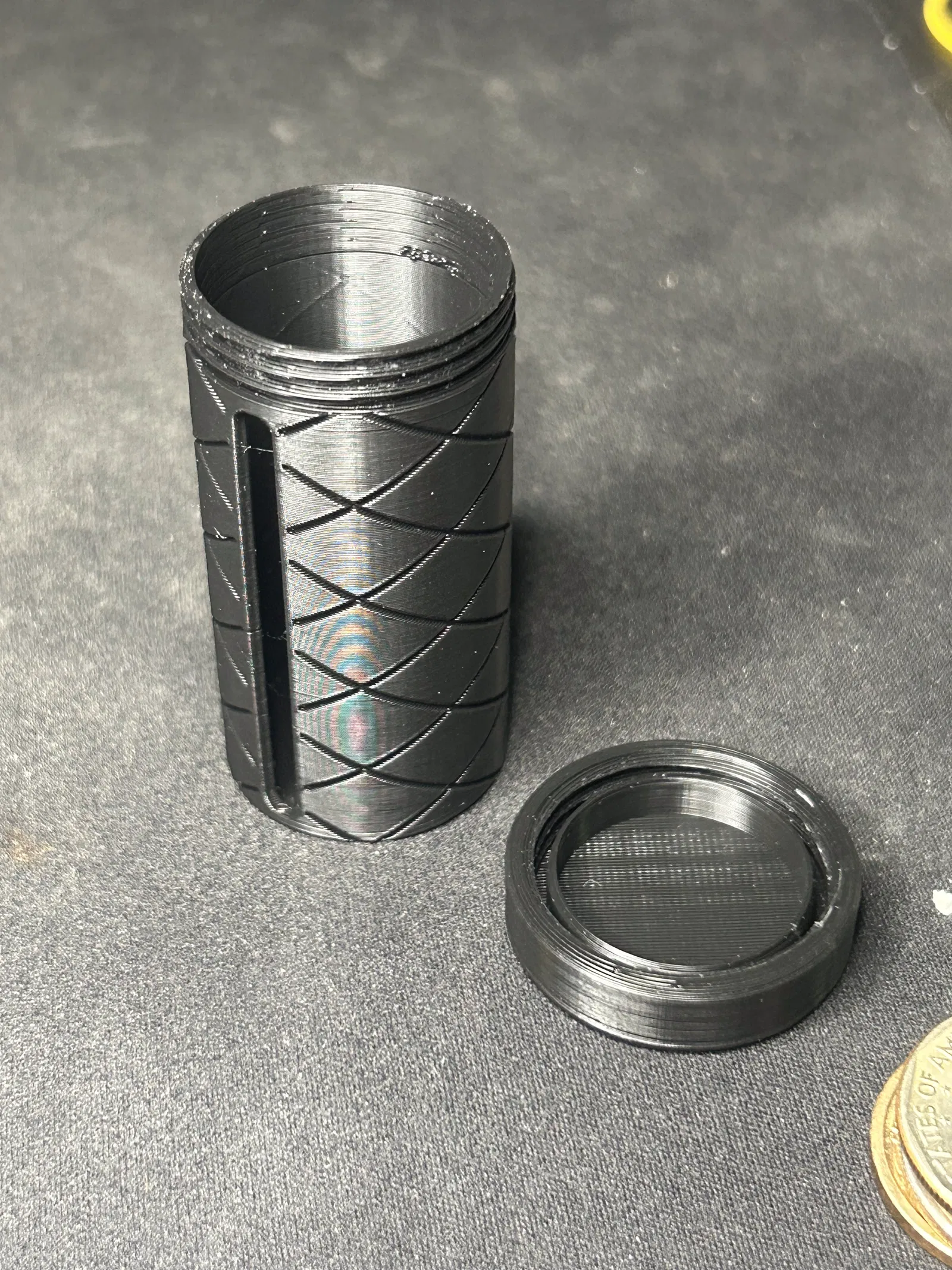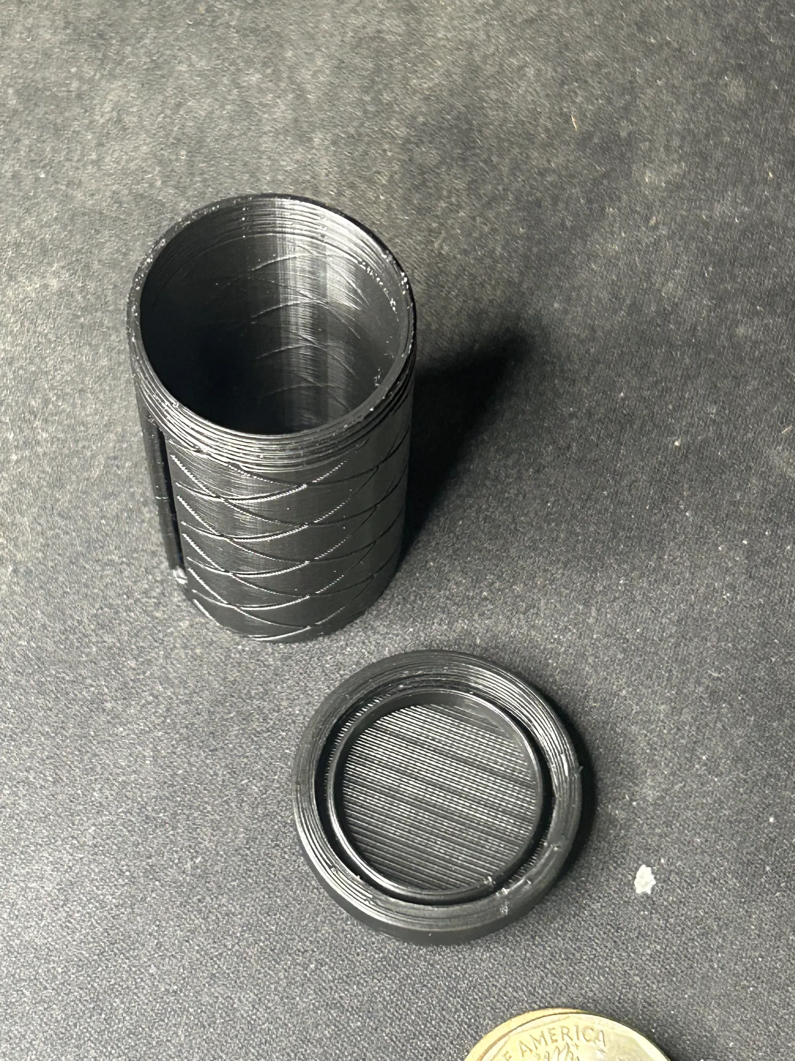 Ống đựng xu đô la có nắp vặn, có thể chứa 25 đồng xu $1. Có người nhờ tui làm ống đựng tiền xu đô la nên tui làm ra cái này đây, tui có thử thêm mấy tính năng nữa. Có thể in dễ dàng không cần hỗ trợ.