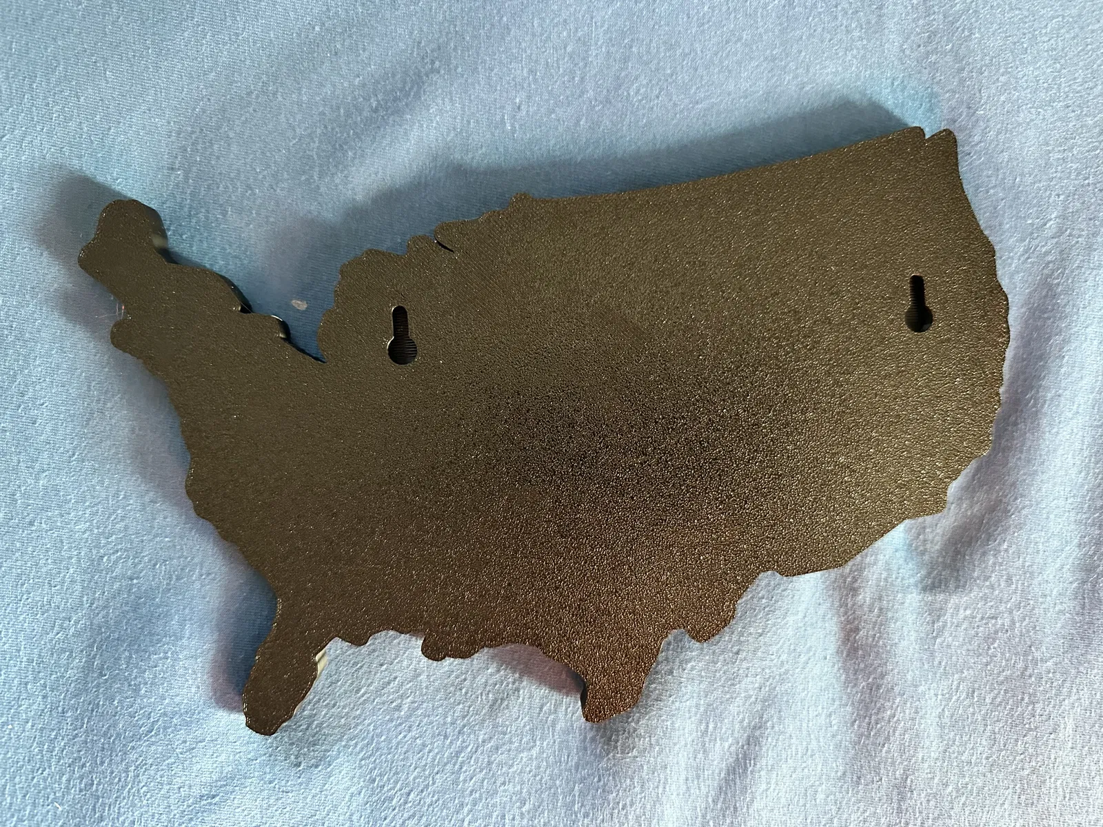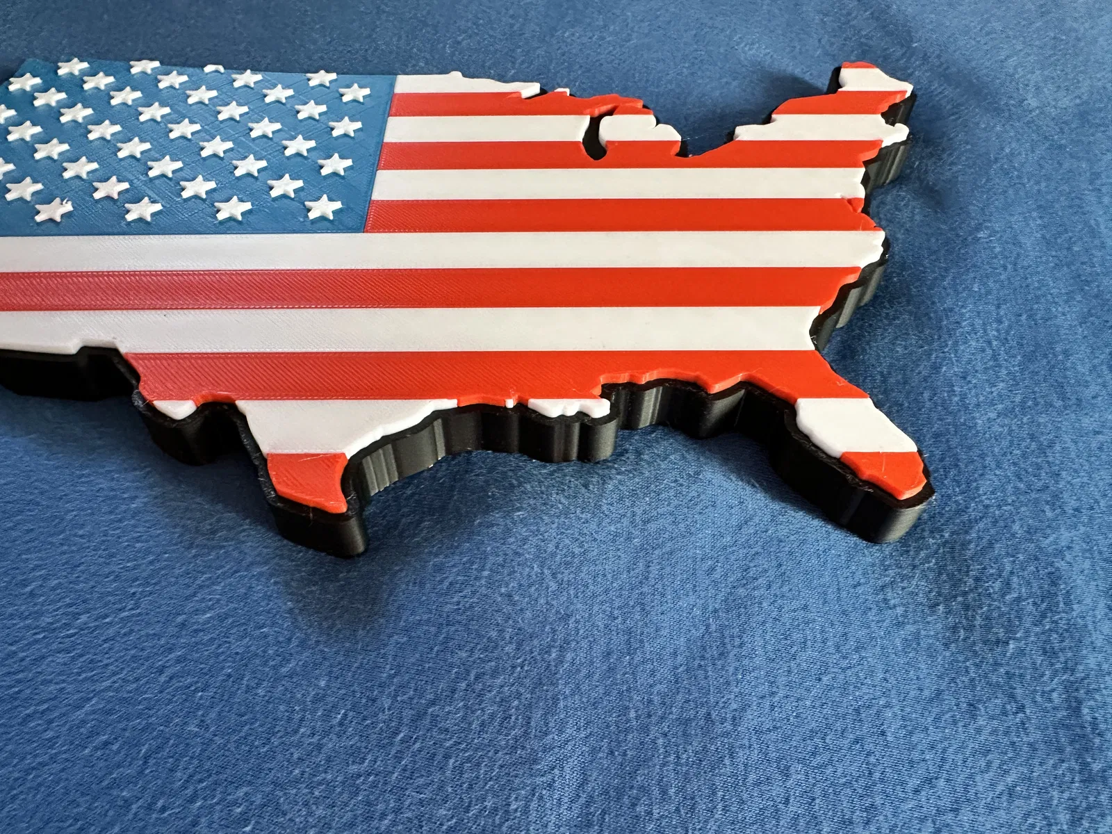 Được lấy cảm hứng từ nhưng tự tay tạo ra, đây là một phiên bản khác của lá cờ Mỹ nằm bên trong hình dạng của nước Mỹ. Cái này rất hợp để in 4 màu, ví dụ như máy Bambu AMS. Trong các file đính kèm có ba kích cỡ: 250mm, 200mm và 150mm chiều rộng. Mỗi cái đều có hai lỗ treo tường để treo chắc chắn lên tường.