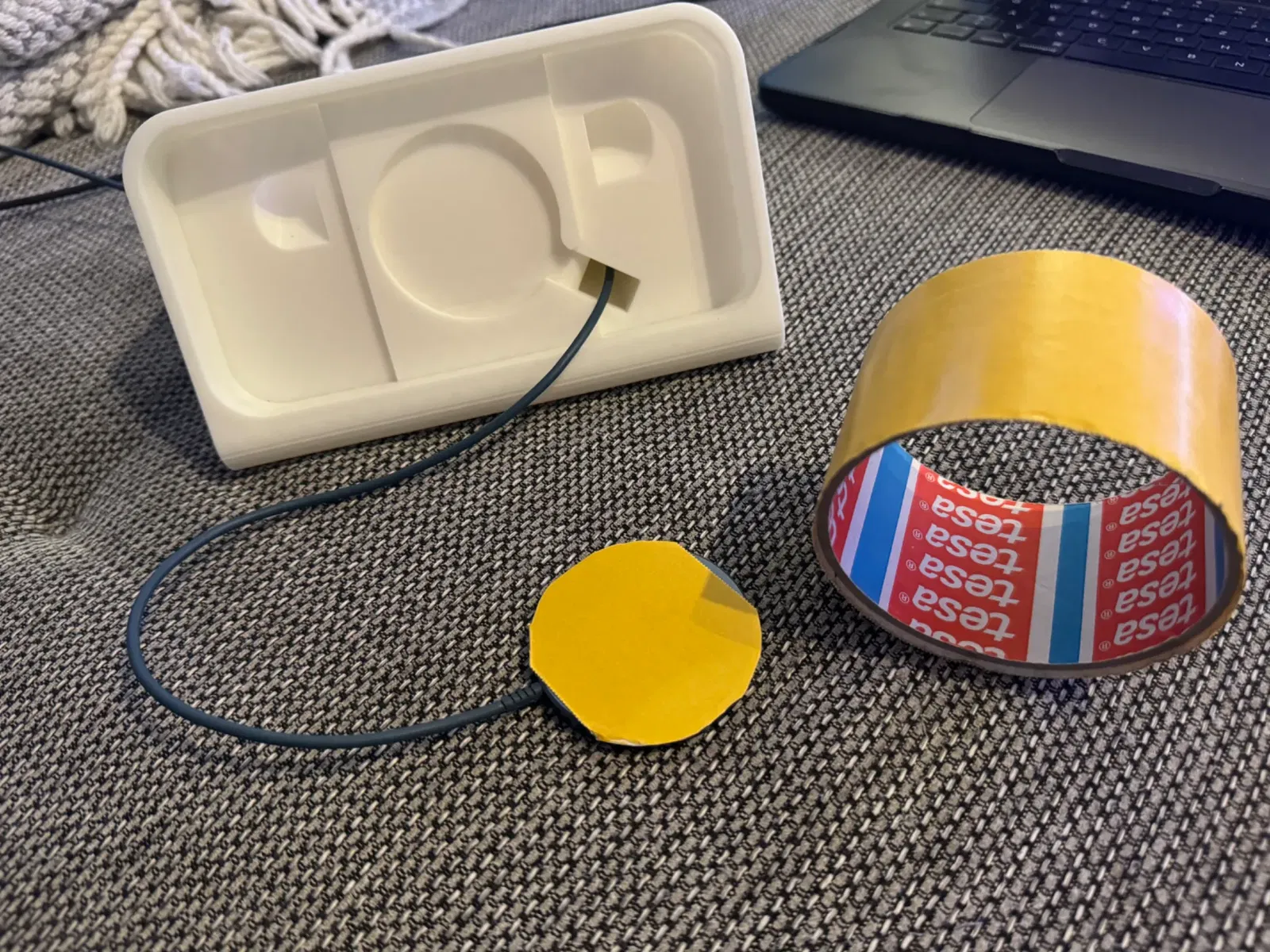 Để cố định bộ sạc không dây cho iPhone, tôi đã dùng băng keo hai mặt.