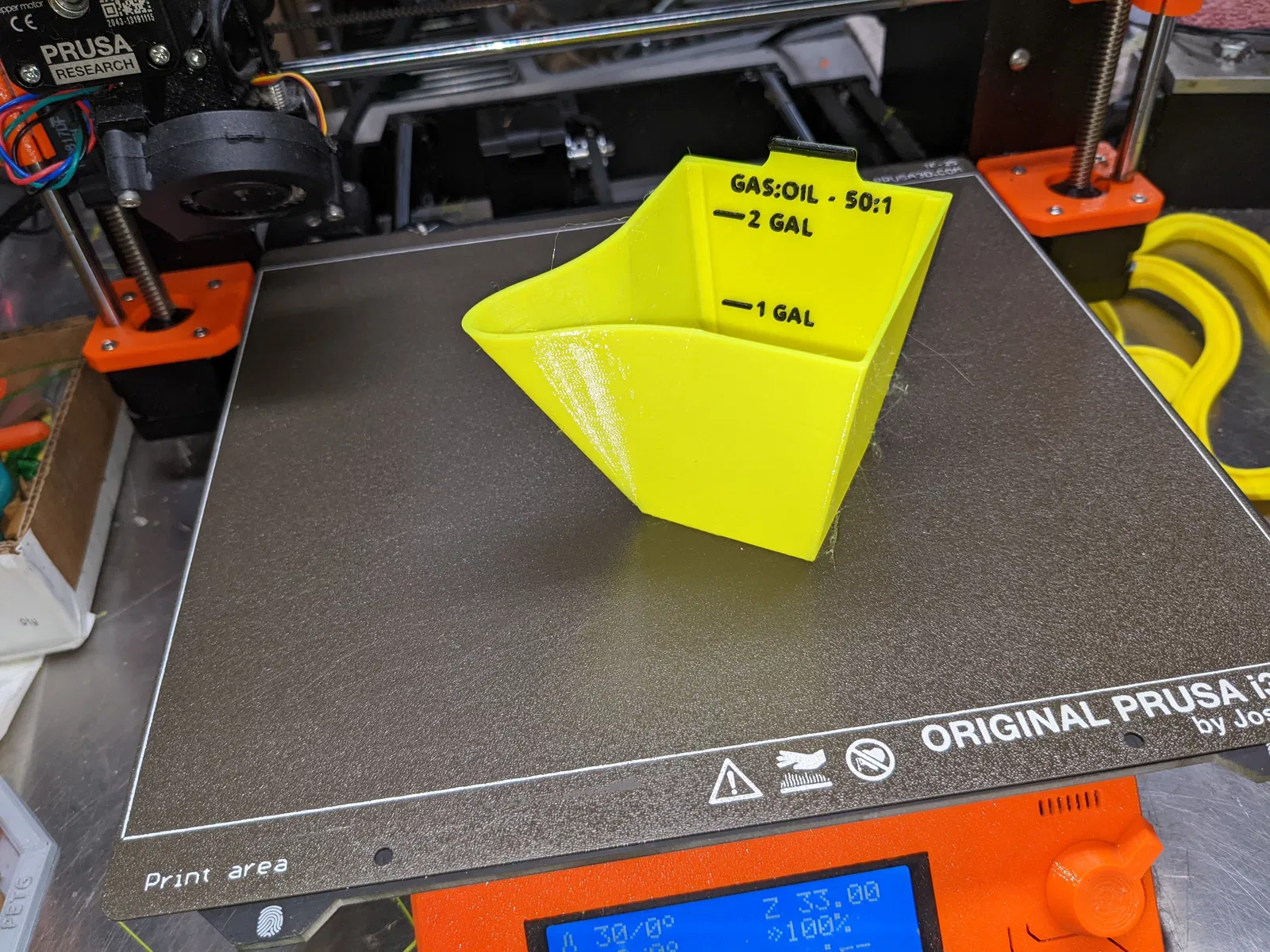Cái cốc đong này tui làm riêng cho máy cưa xích của tui, cái loại mà nó kêu pha xăng với nhớt tỉ lệ 50:1 đó. Mà tui cũng muốn làm cho nó xài được nhiều hơn, với lại cho mấy cái tỉ lệ pha nhớt khác nhau nữa. Bởi vậy tui thiết kế cái cốc này có mấy cái nhãn thể tích có thể tháo ra gắn vô được.