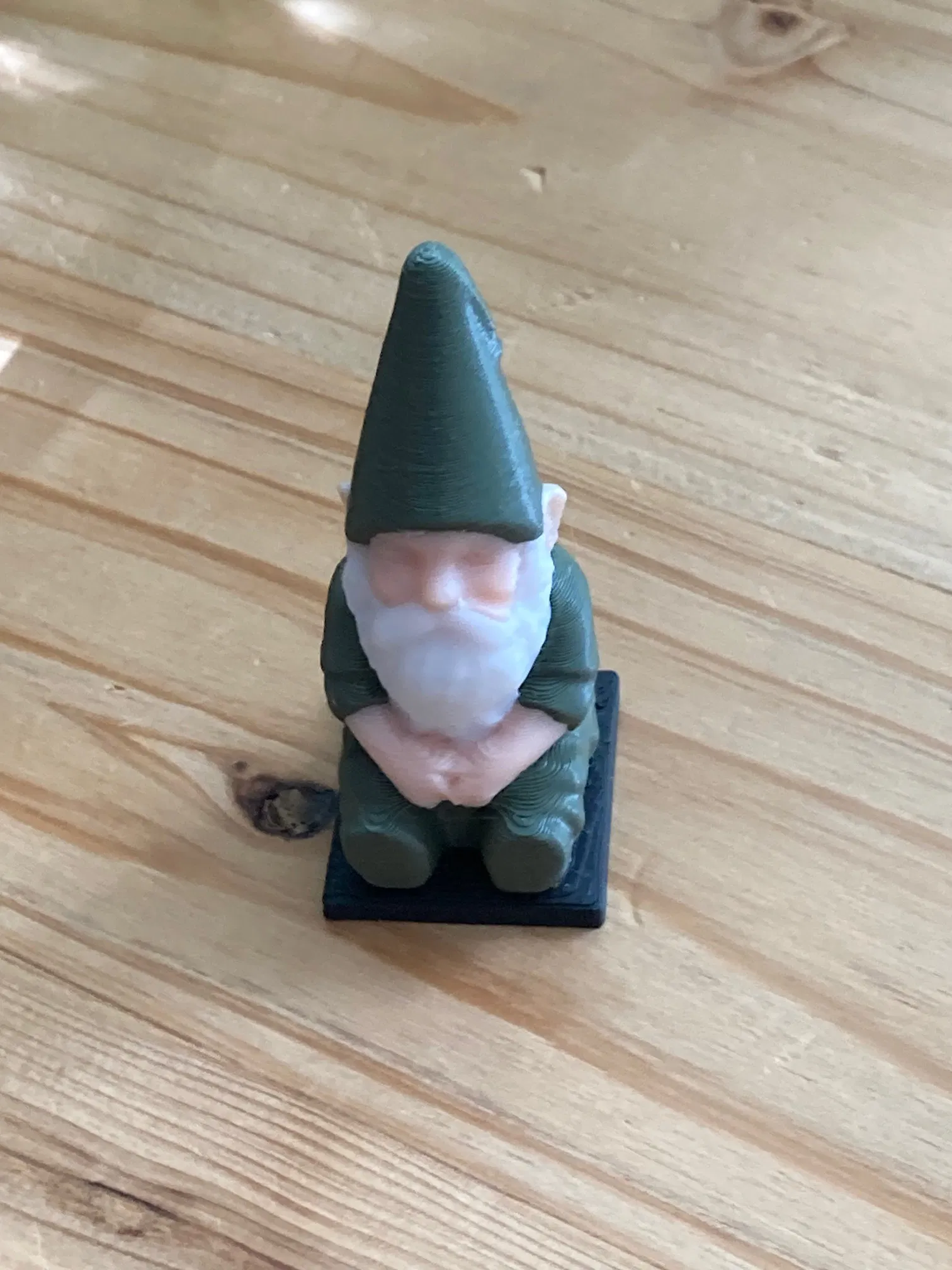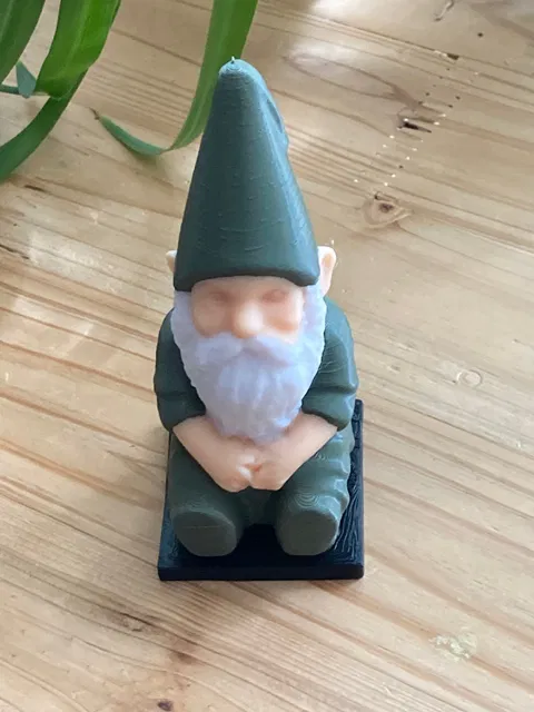 Mô hình ông lùn vườn với chi tiết phóng đại, có 3 kích cỡ: 152.40mm, 100mm và 50mm. Bài viết mô tả chi tiết cách in từng kích cỡ, bao gồm cài đặt slicer và vật liệu sử dụng cho các phiên bản khác nhau.