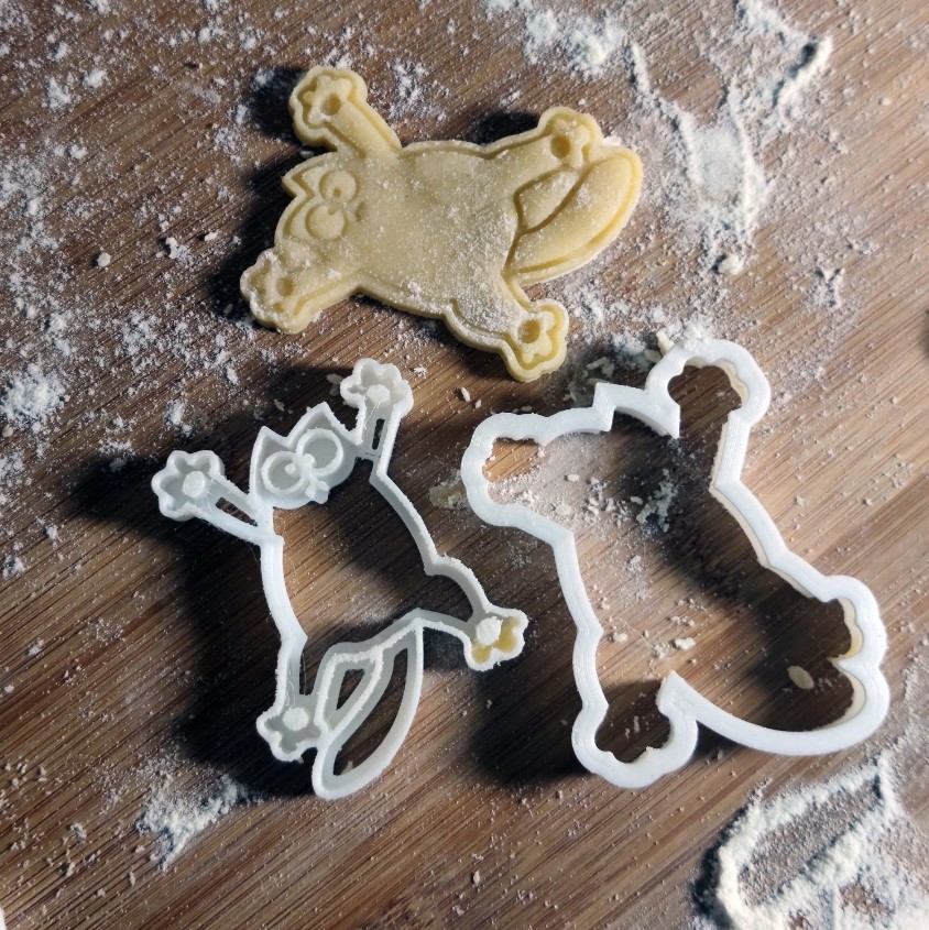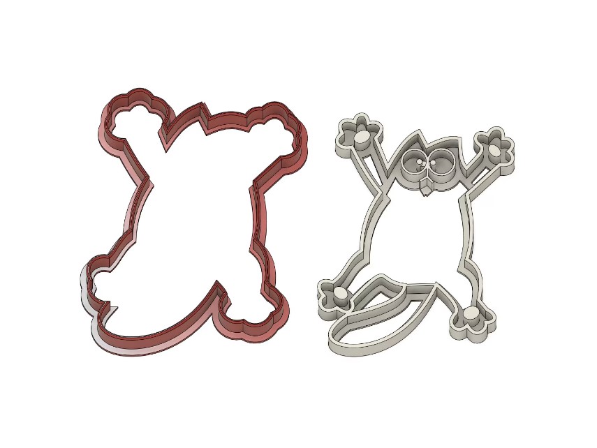 Khuôn gồm 2 phần. Phần bên ngoài dùng để cắt và phần bên trong tạo đường nét chi tiết, đường viền trên bánh.