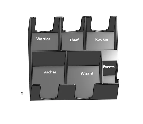 Tạo một hộp đựng (insert) tùy chỉnh cho game Keep the Heroes Out, giúp chứa gọn mọi thứ, bao gồm cả các bản mở rộng, lá bài bọc sleeve và sách hướng dẫn, chỉ đội nắp hộp khoảng 22mm.