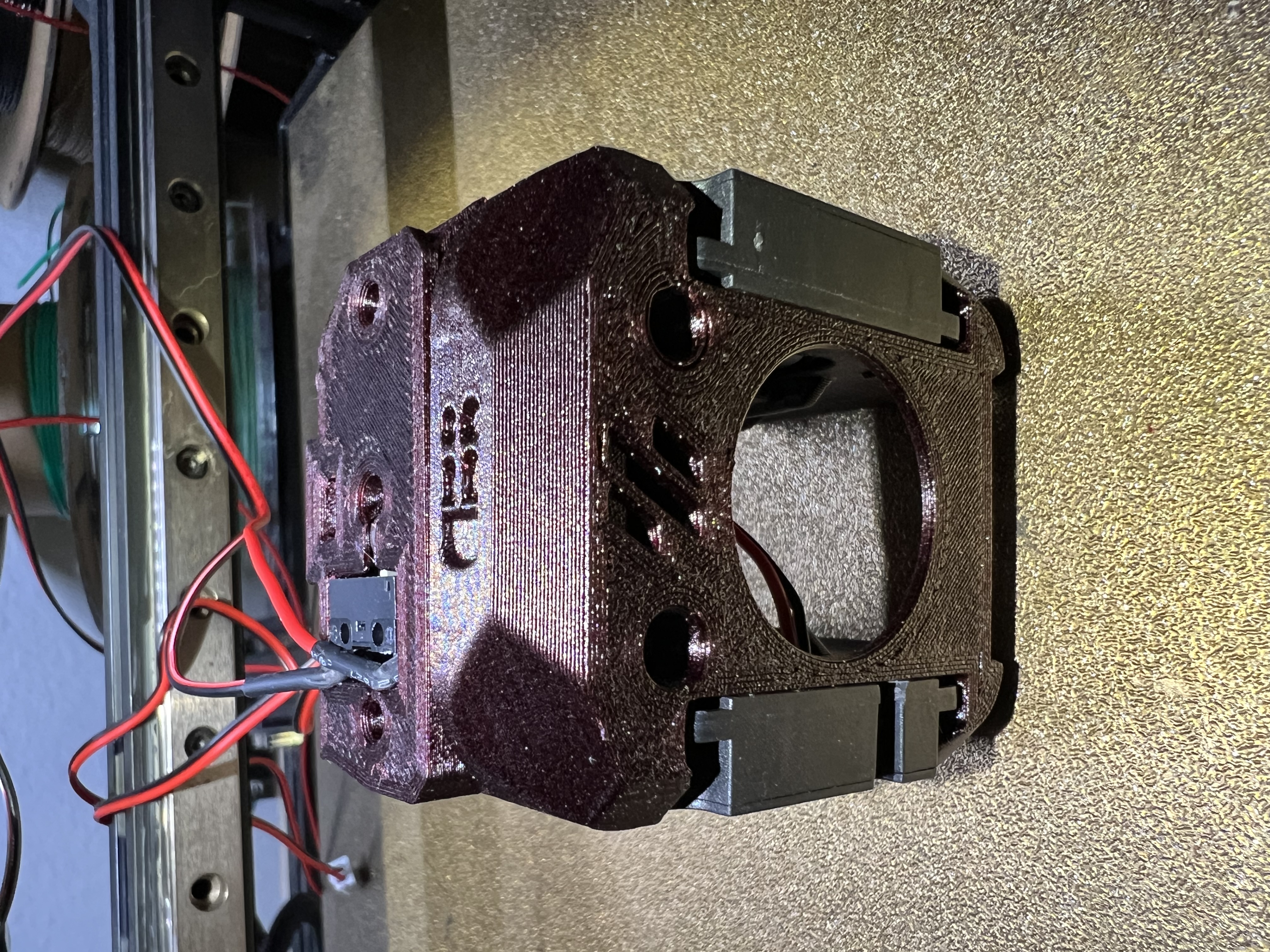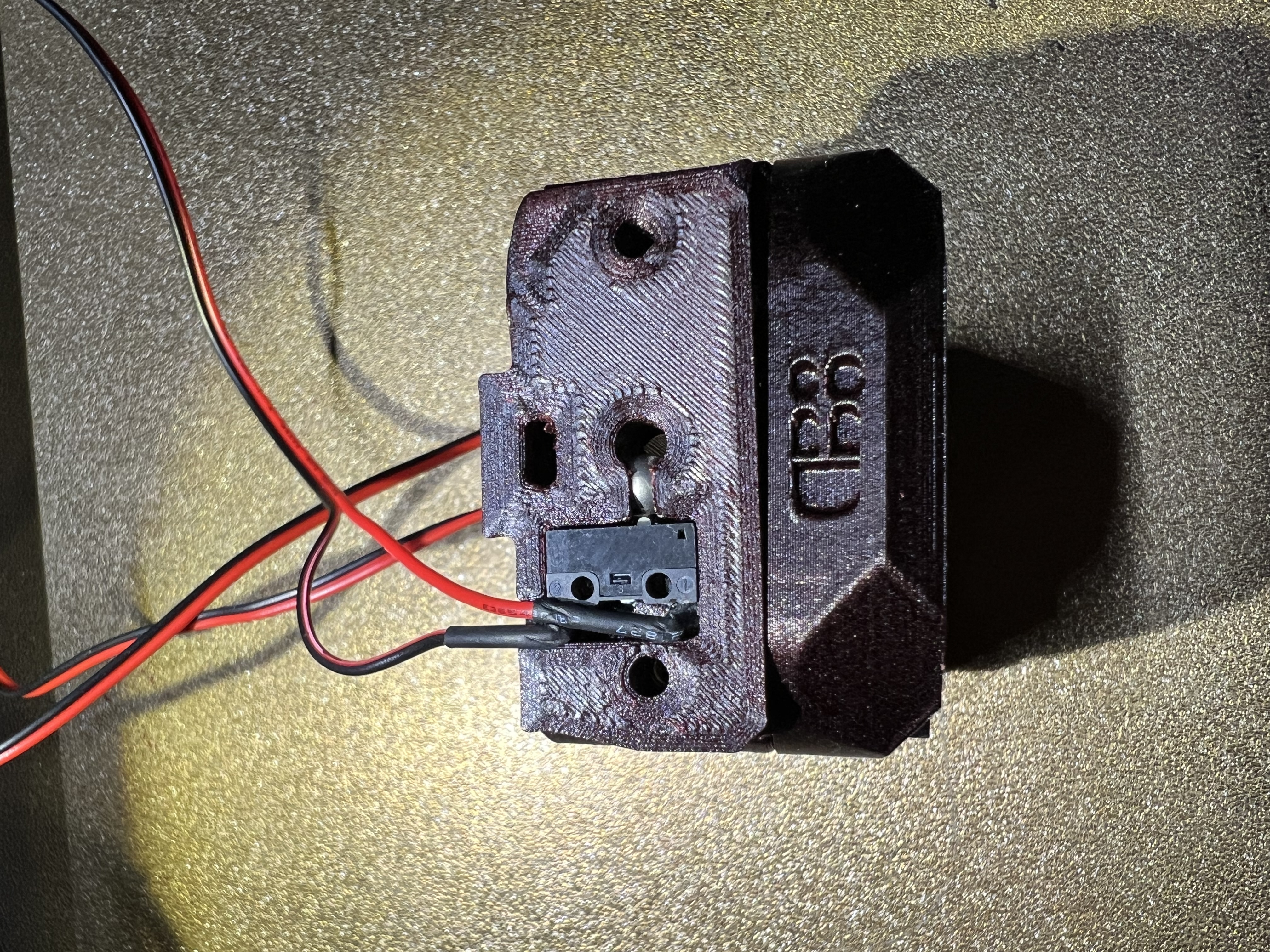Tui có gắn thêm cảm biến dây tóc vô cái chỗ gắn orbiter của Dragonburner v8, để lấy cái đoạn ngắn giữa bánh răng extruder với heatbreak, xài cho ERCF. Dùng bạc đạn 5.5mm với microswitch Omron D2f-01.