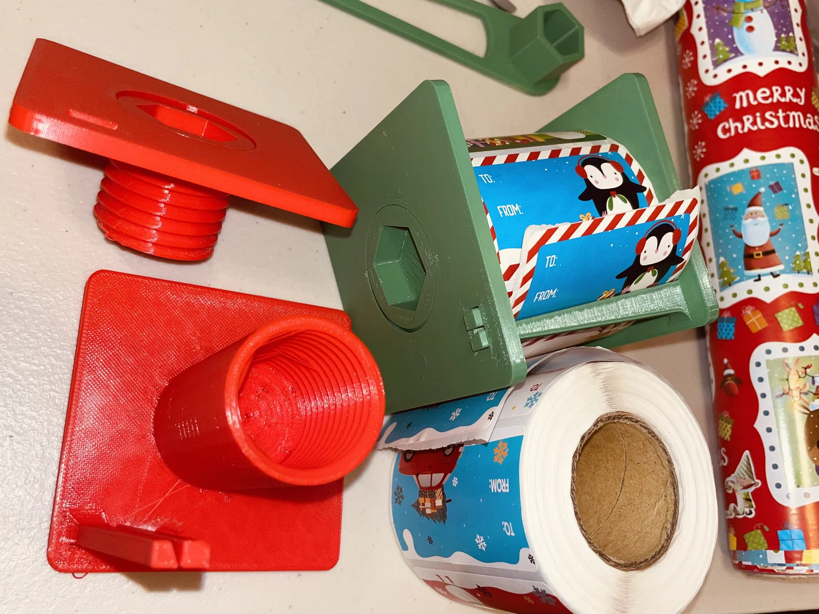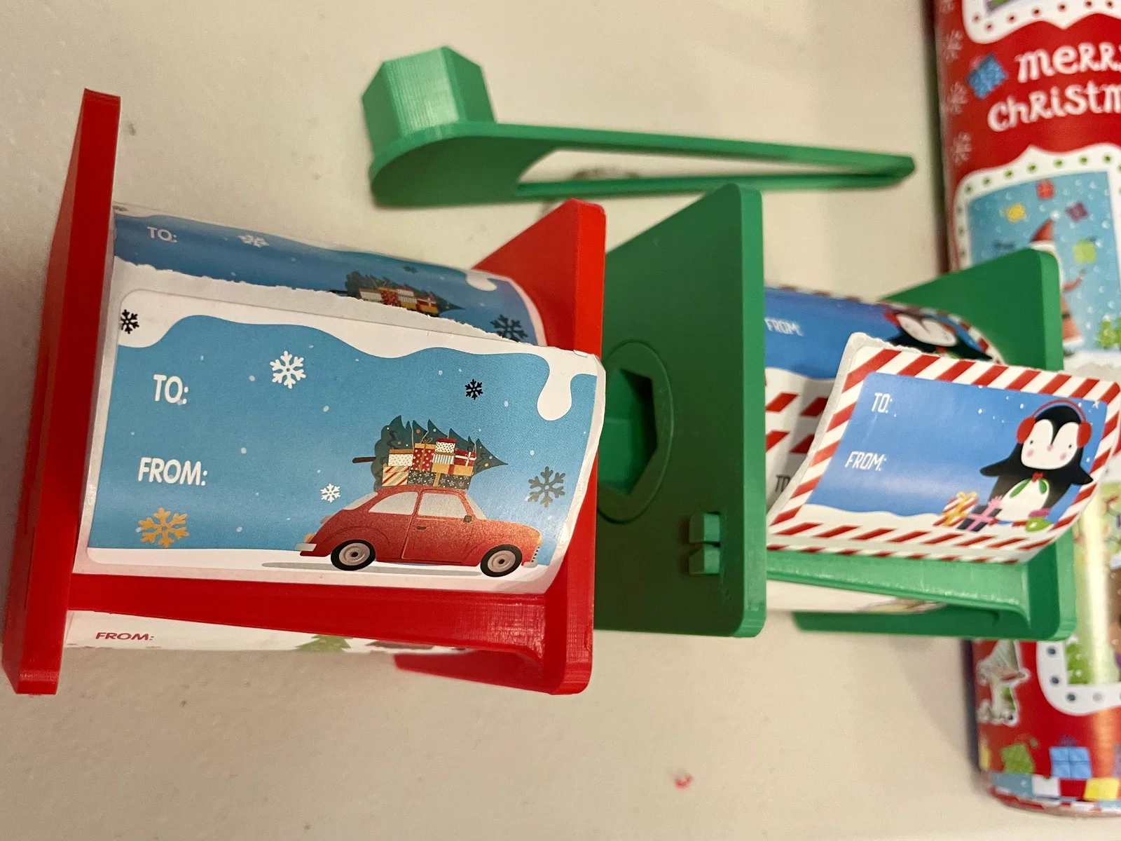 Bộ phân phối này được thực hiện cho cuộn thẻ hiện tại rộng 2,95 "được mua từ Amazon (https://www.amazon.com/gp/product/b07xp175cm/ref=ppx_yo_dt_b_asin_title_o02 Thông qua trục cuộn, một hướng dẫn để giữ tấm nhãn và thanh xé để loại bỏ sự hỗ trợ dư thừa.