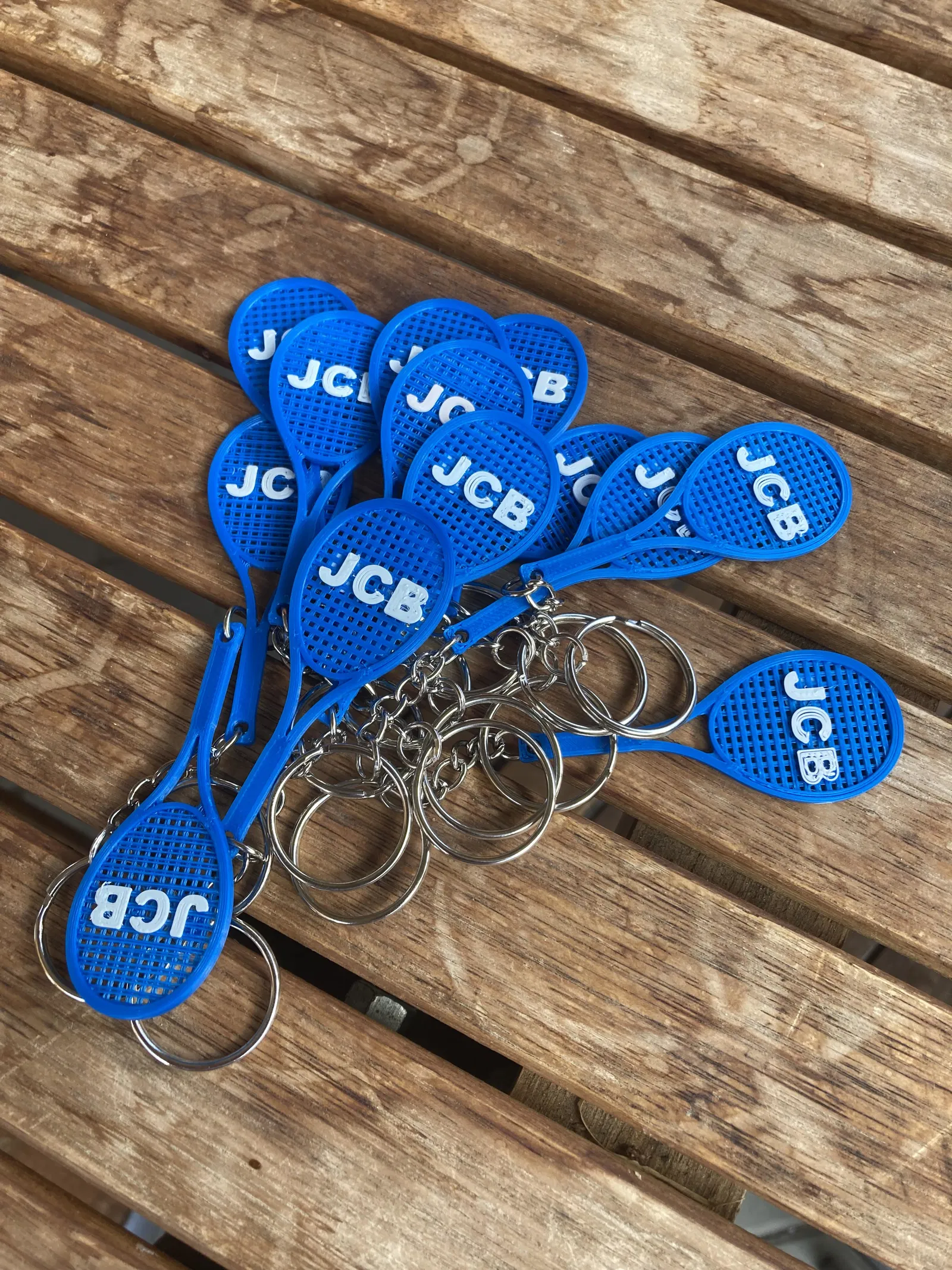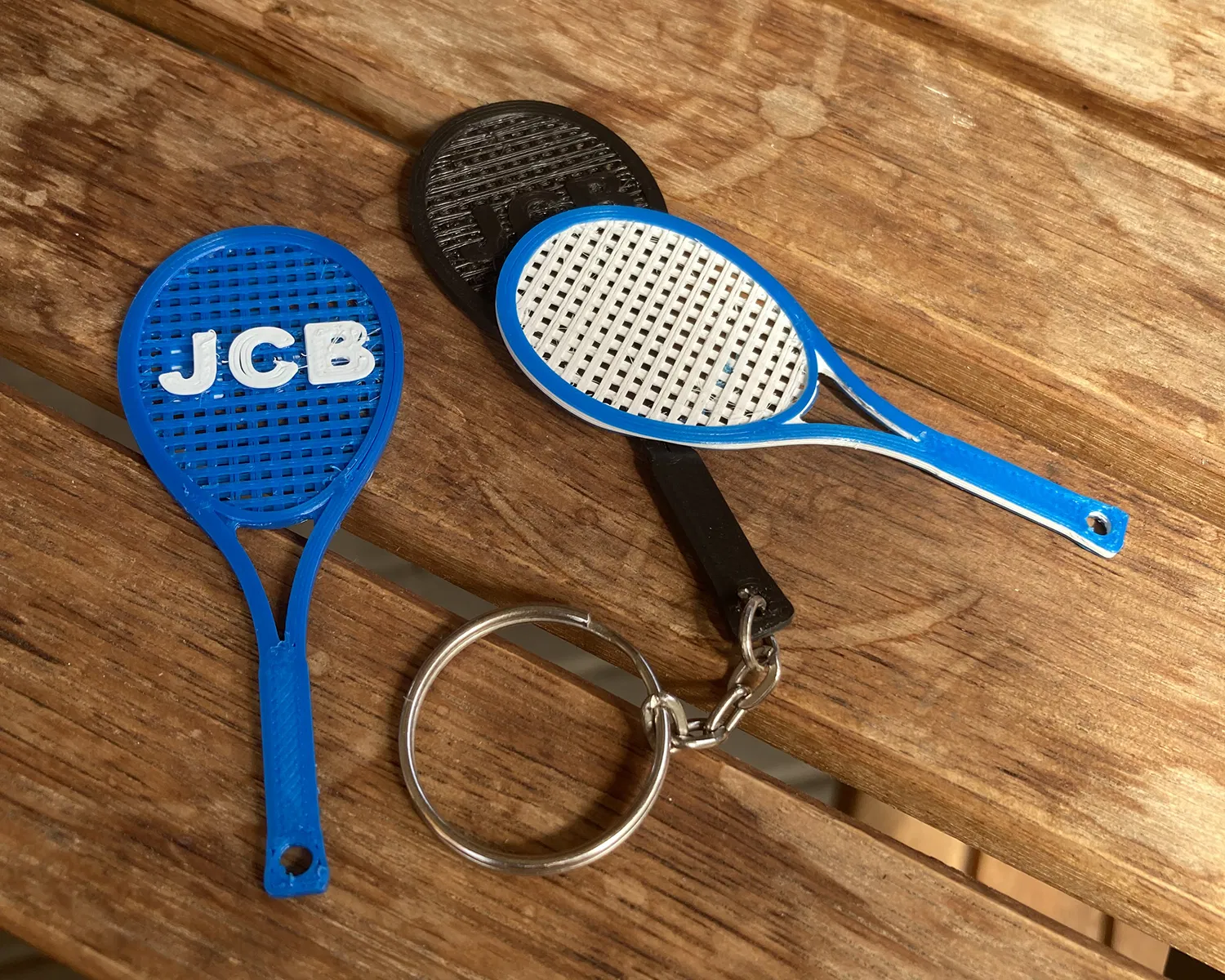 Móc khóa hình vợt tennis 30x70mm. Lỗ xỏ khoen tròn là 3mm. Mình có đính kèm file STEP để bạn có thể tự thêm logo của mình lên đó nha.
