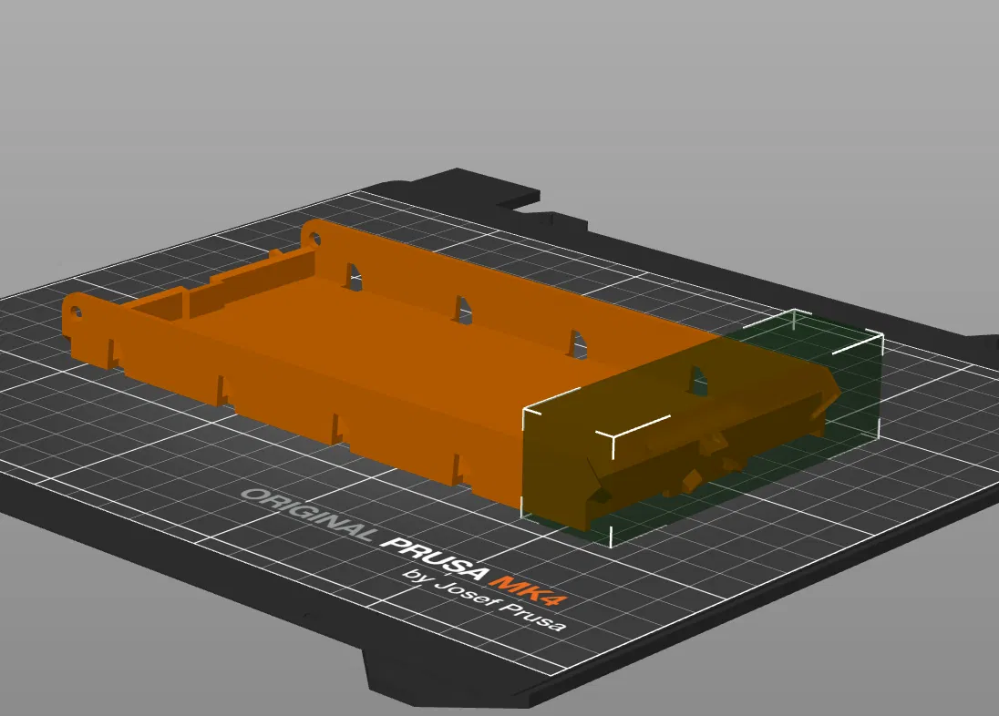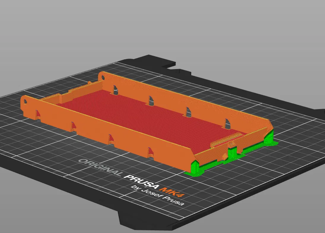 In với mật độ 25% và 4 lớp vỏ. Làm thêm một hộp "Support enforcer" ở cuối hộp đựng đồ trên nắp.