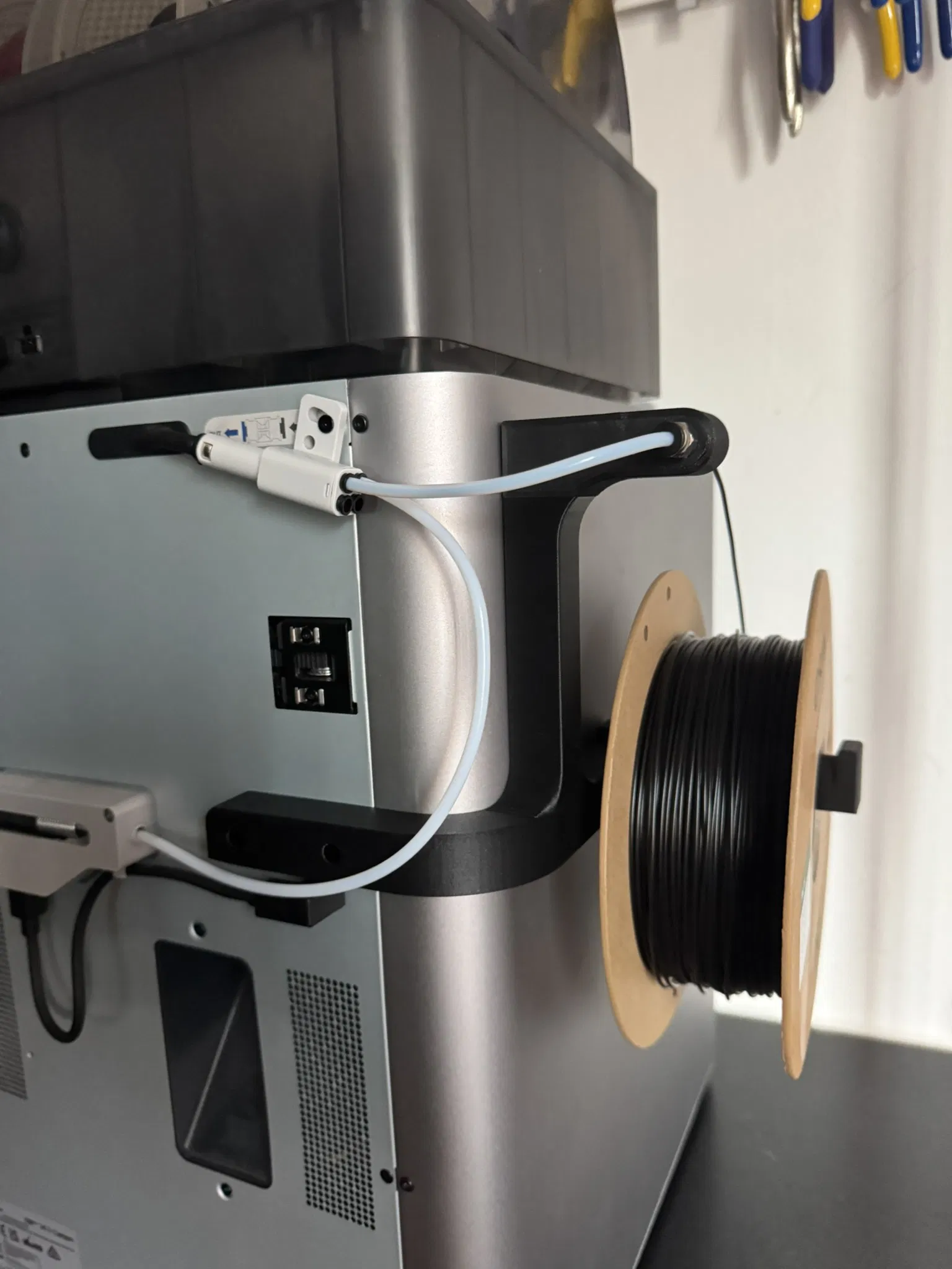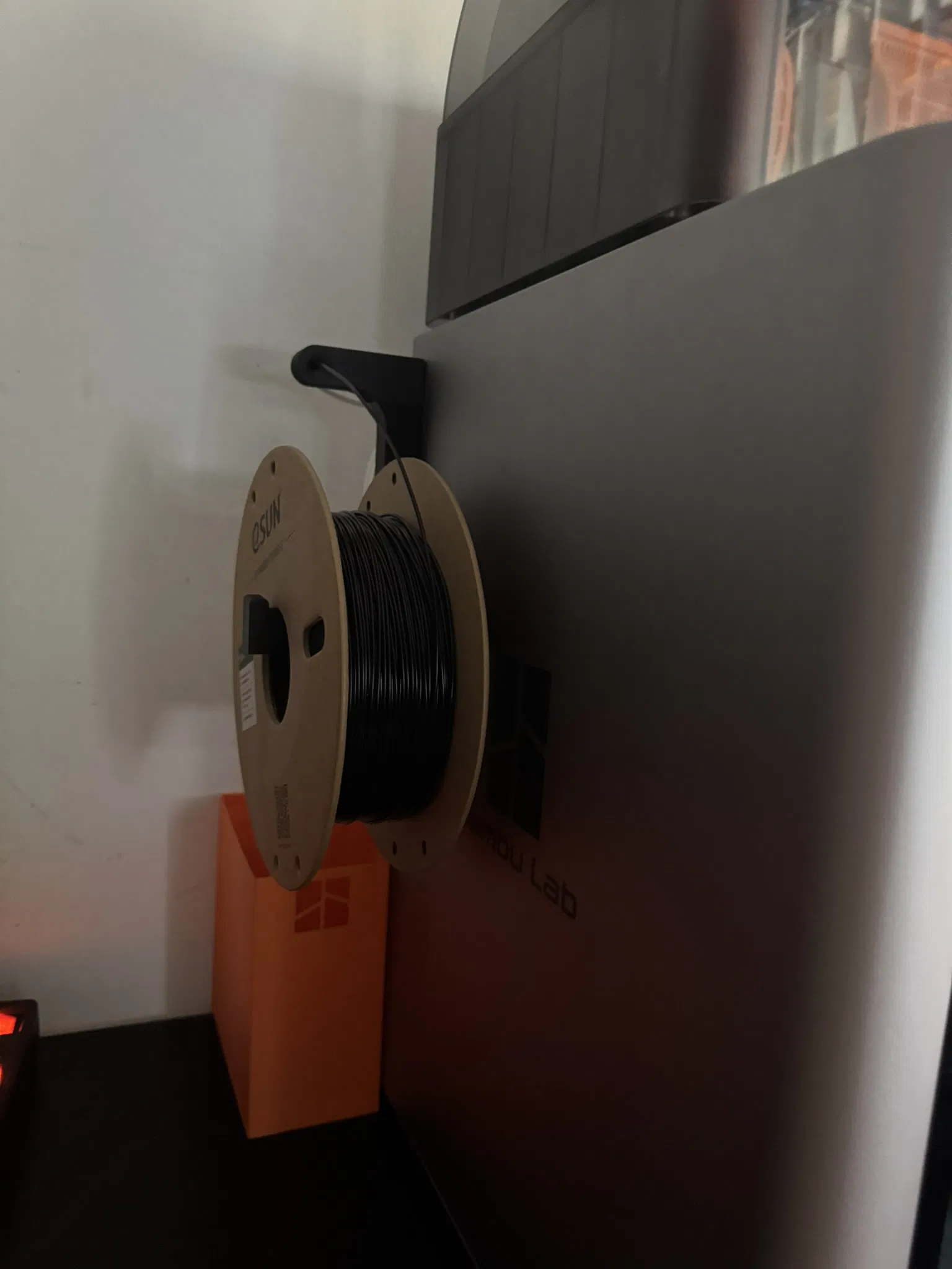 Giá đỡ cuộn sợi cho Bambulab X1C đặt bên hông.