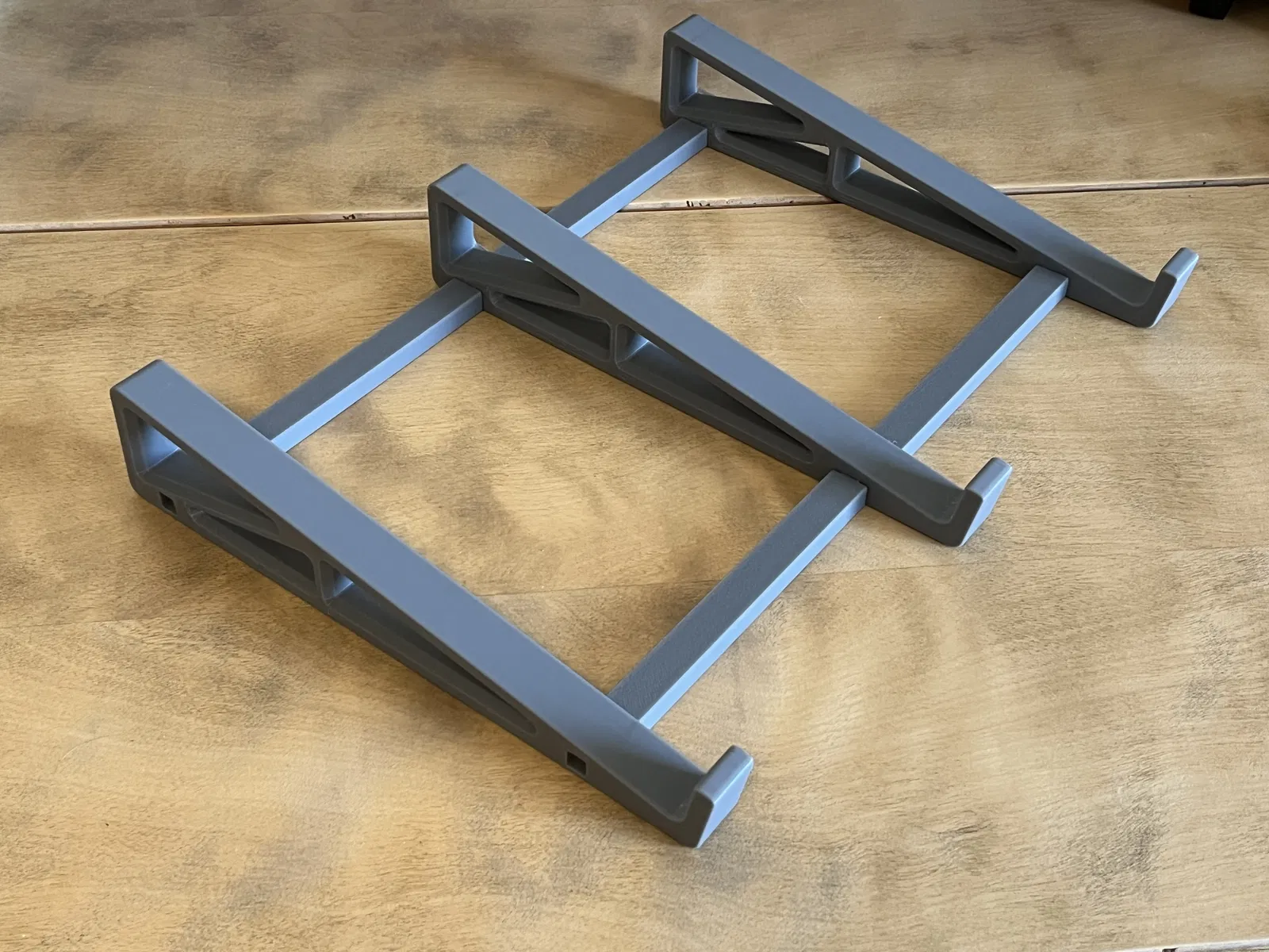 In 3 cái đế với 4 cái thanh chống nha. Mấy cái bộ phận này nó trượt vô nhau bằng khớp ép, khỏi cần keo hay ốc vít gì hết. Mẫu này thì nó đỡ được laptop 15 inch, còn nếu mà muốn xài cho laptop bự hơn thì chỉnh cái chiều dài mấy cái thanh chống là được.