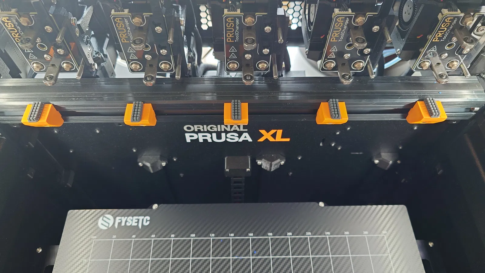 Em xài cái Prusa XL gần như mỗi ngày từ hồi tháng 5 tới giờ. Một trong mấy thứ đầu tiên em làm là cái đế giữ bàn chải vệ sinh vòi phun, cho mấy cái bàn chải đồng rẻ tiền đó. Mấy cái đó xài cũng được, nhưng mà chưa có hoàn hảo lắm.