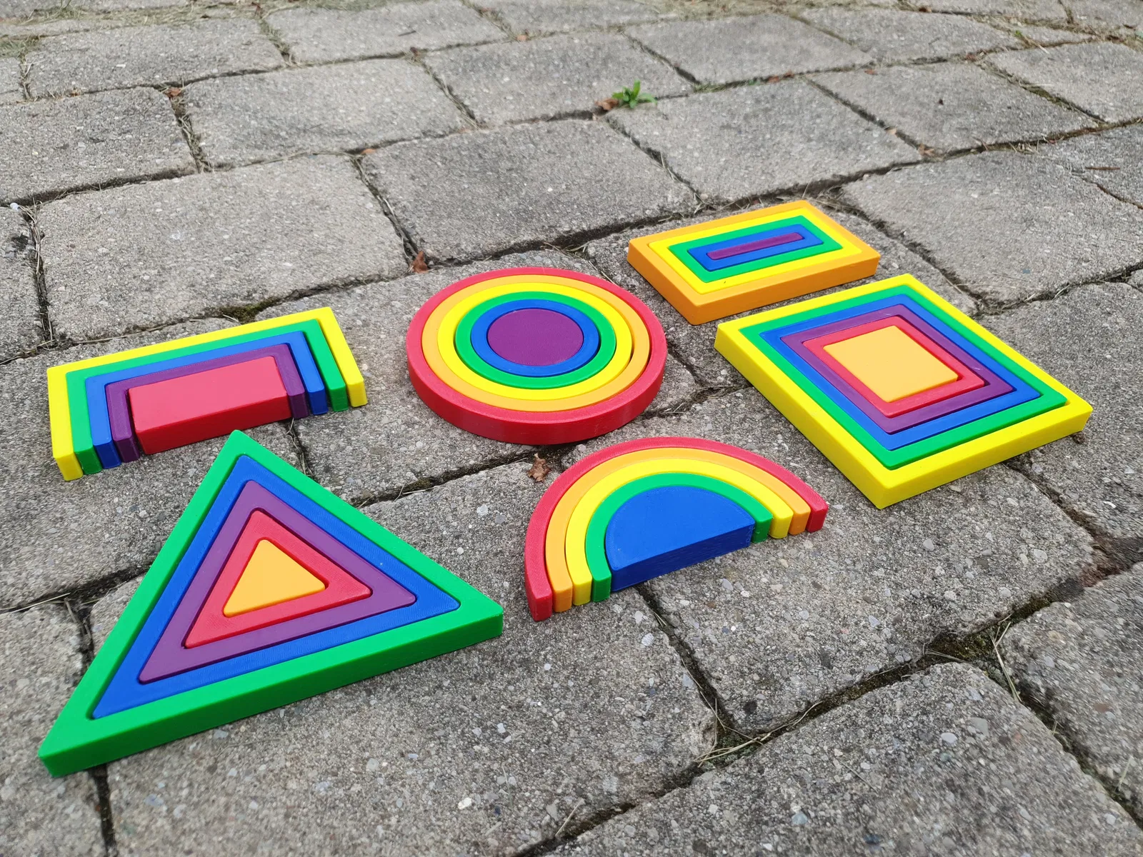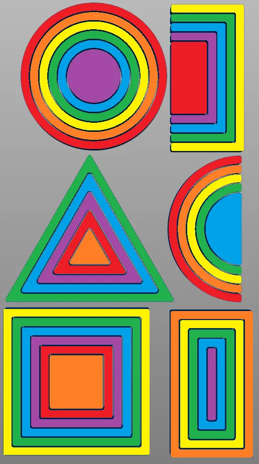 Bộ xếp hình Montessori với nhiều hình dạng và màu sắc khác nhau. Mô hình này được thiết kế để đảm bảo an toàn cho trẻ em, với các bộ phận có kích thước lớn hơn 1.25 inch khi in ở tỷ lệ 100%. Các hình có thể hoán đổi cho nhau, giúp bé tăng khả năng sáng tạo và học hỏi. Khuyến khích in bằng brim để tránh cong vênh và chà nhám các cạnh trước khi sử dụng.
